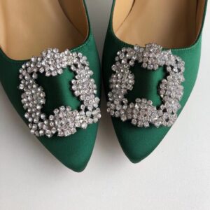 Manolo Blahnik’s Hangisi pumps are truly timeless and iconic. Perfect for brides, they’ve been made at one of the designer’s beloved factories in Italy, where he’s often found developing samples and whittling lasts by hand. Lined and soled in leather, they have 105mm heels and are topped with the signature glistening buckle that first appeared in Spring ’08 and has remained enduringly chic ever since.