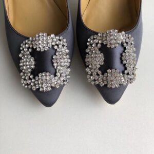 Manolo Blahnik’s Hangisi pumps are truly timeless and iconic. Perfect for brides, they’ve been made at one of the designer’s beloved factories in Italy, where he’s often found developing samples and whittling lasts by hand. Lined and soled in leather, they have 105mm heels and are topped with the signature glistening buckle that first appeared in Spring ’08 and has remained enduringly chic ever since.