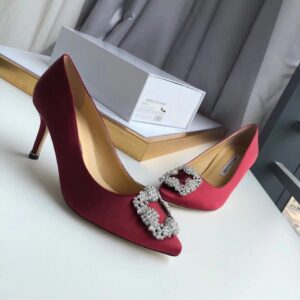 Inspired by mid-century courtesans and the paintings of Boldini, the Manolo Blahnik Hangisi pumps are universally recognised for their bejewelled brooch detailing. Crafted in beautiful silk satin with square crystal buckle, the ultra-feminine single-sole silhouette features a flattering low-cut, pointed toe and a signature metal-trimmed stiletto heel.