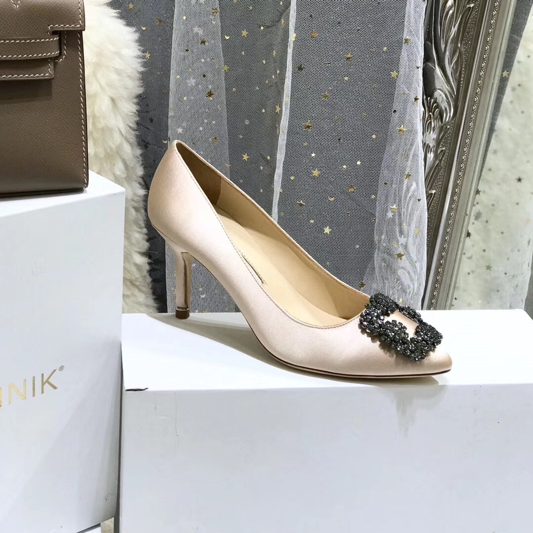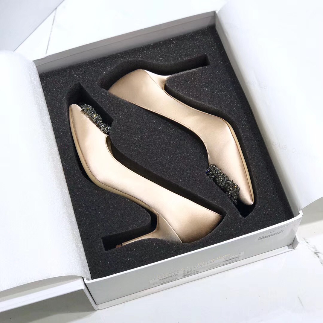 Manolo Blahnik Hangisi 70 Pumps In Champagne Satin