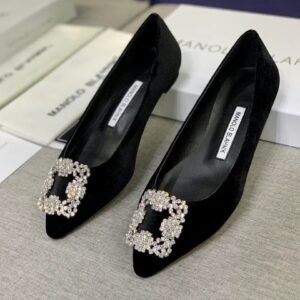 Manolo Blahnik discovered the beautiful crystal-embellished buckle in Italy, where his designs are also meticulously crafted. These Hangisi flats are made from soft velvet with leather linings and soles. Take a cue from stylist and influencer Emili Sindlev, who likes to match the shade of her Manolo’s to her accessories.