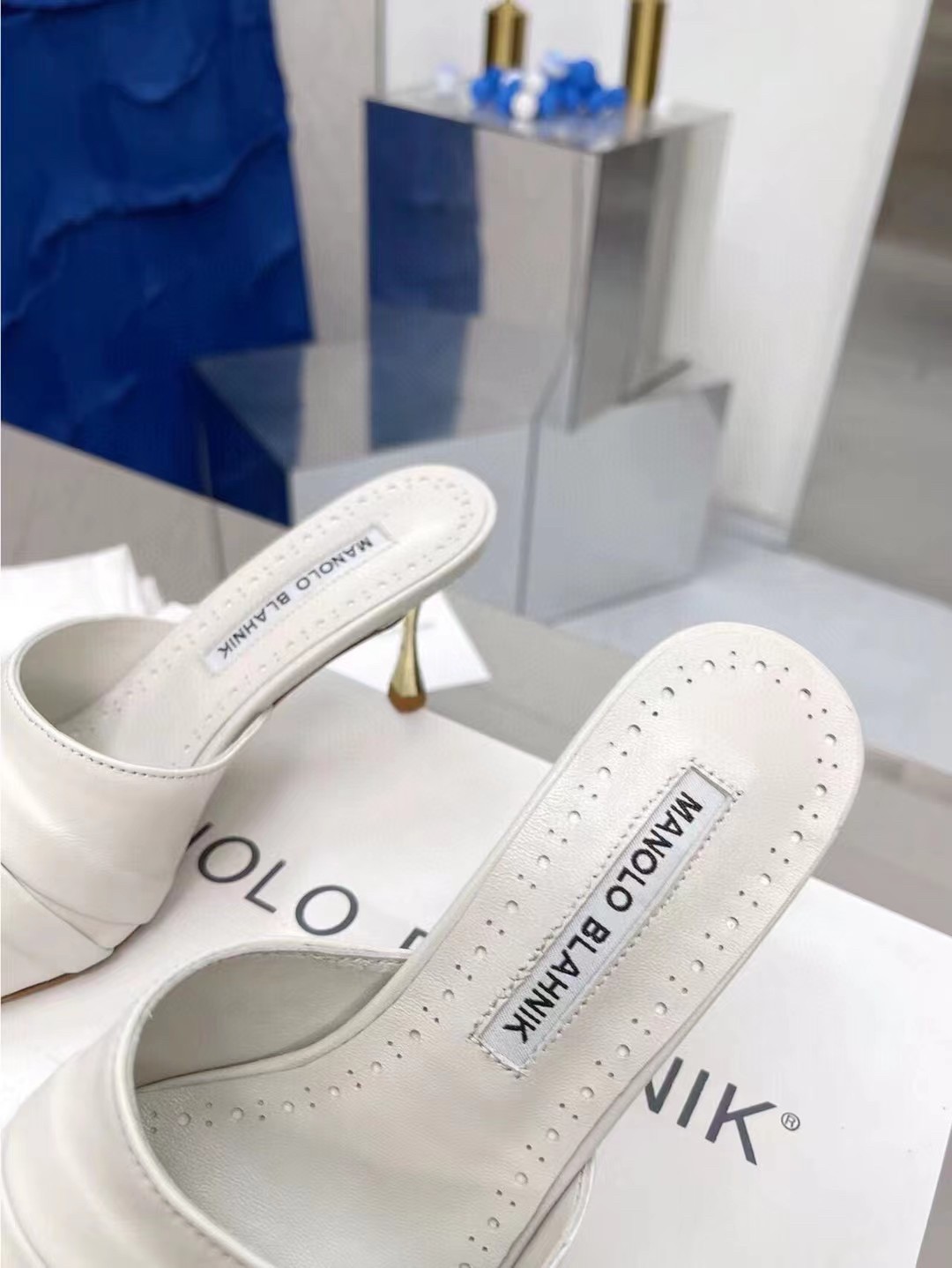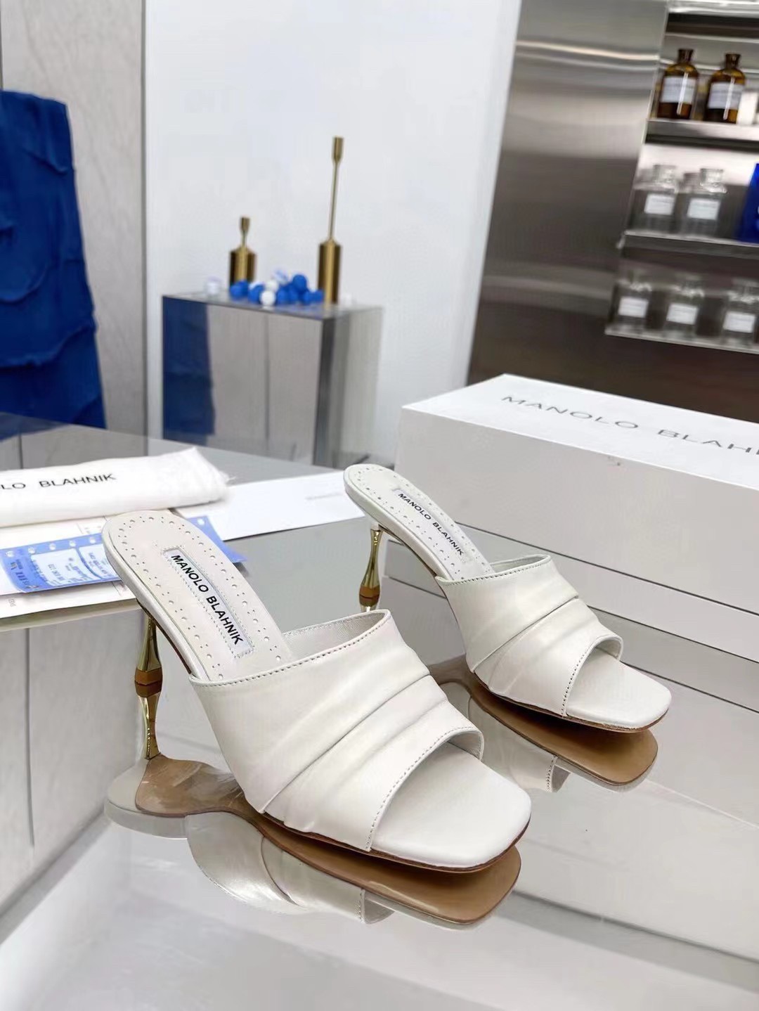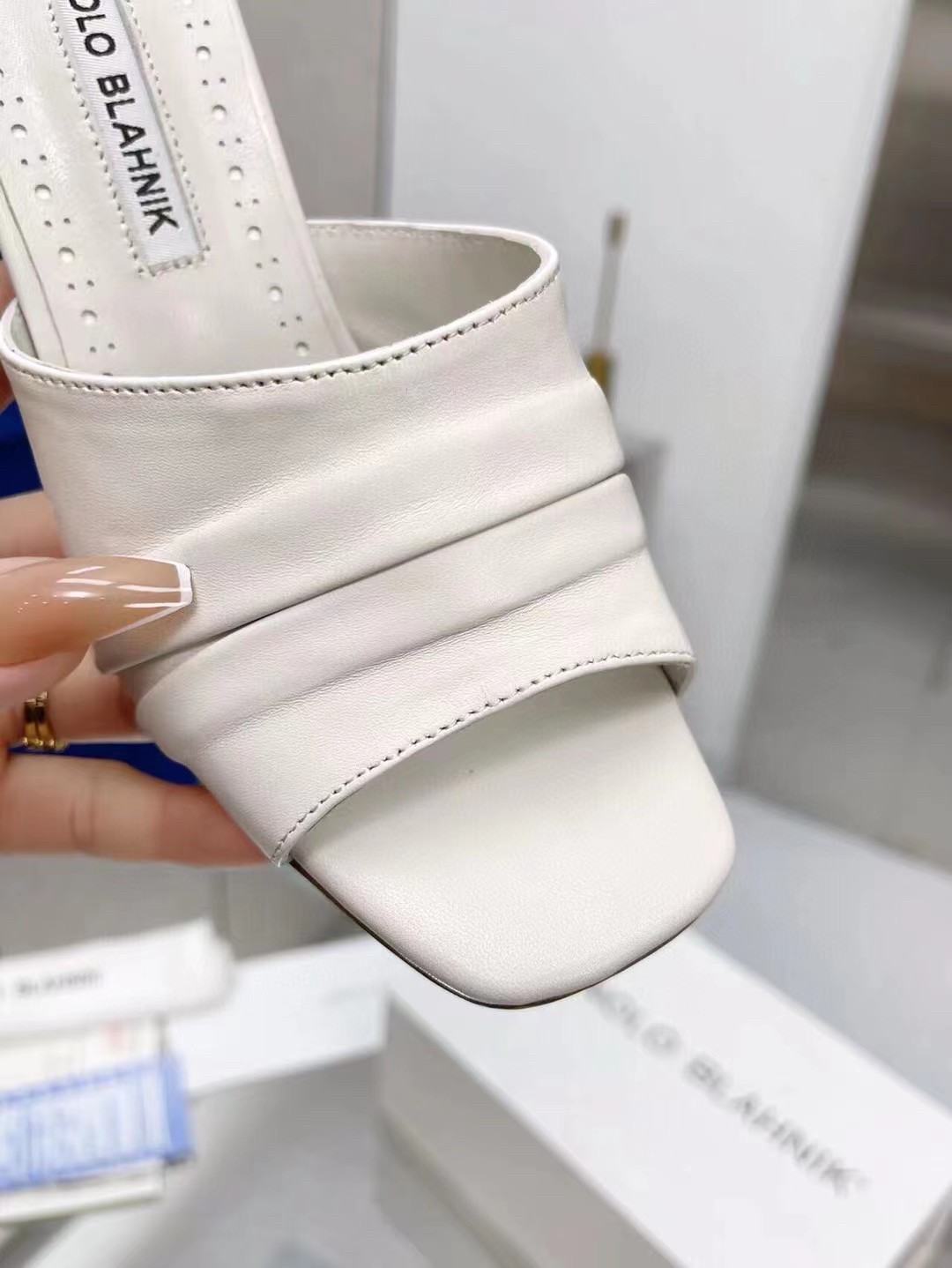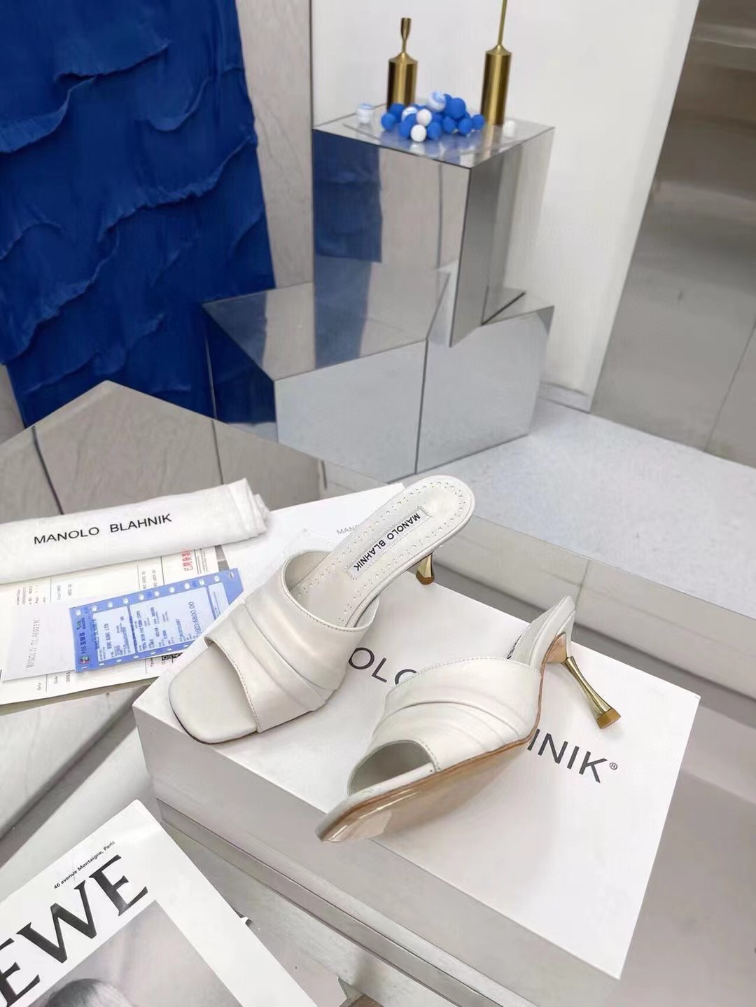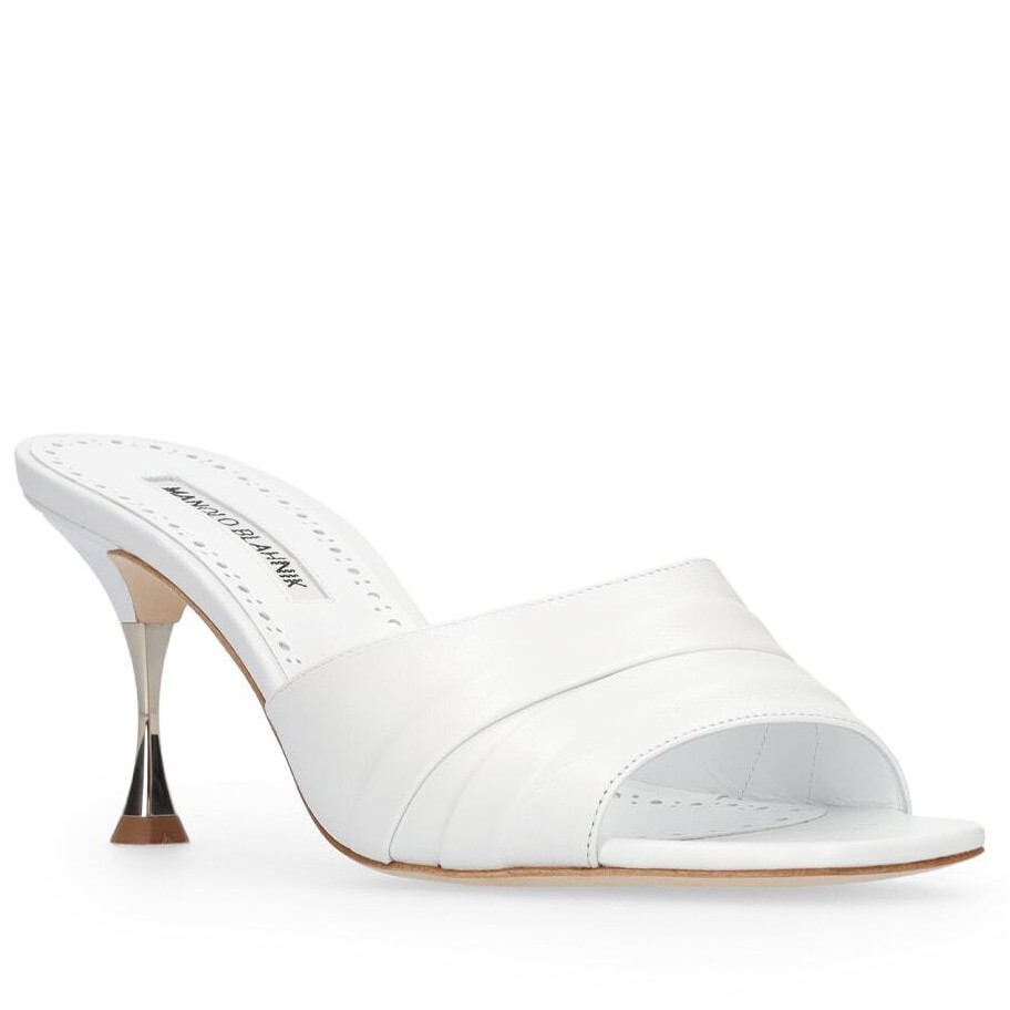 Manolo Blahnik Picoux 70mm Sandals In White Lambskin