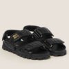 Precious matelassé workmanship revisits the classic aesthetic of sandals thanks to its textured and extremely sophisticated three-dimensional effect. The metal lettering logo enhances the upper with an iconic and distinctive touch, while the leather sole and covered heel complete the design.