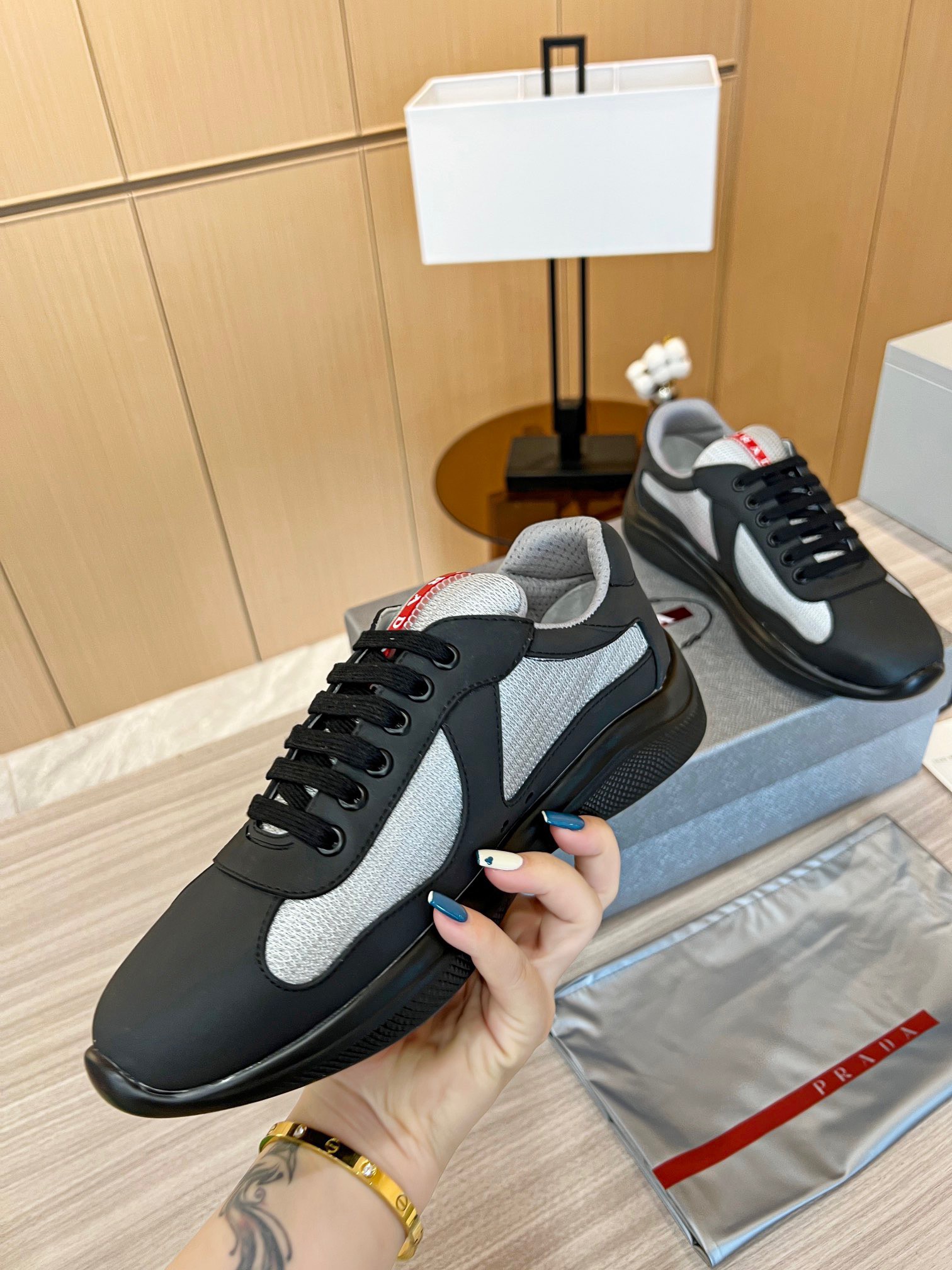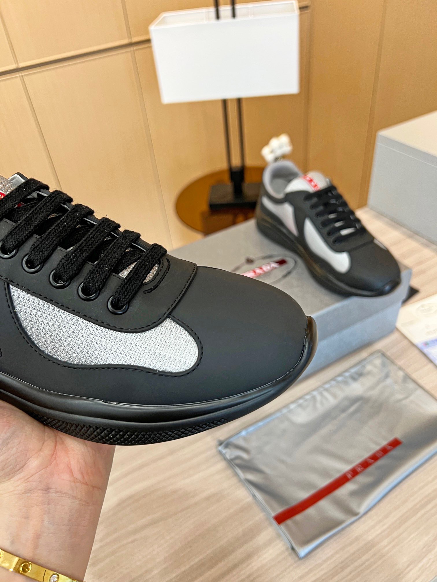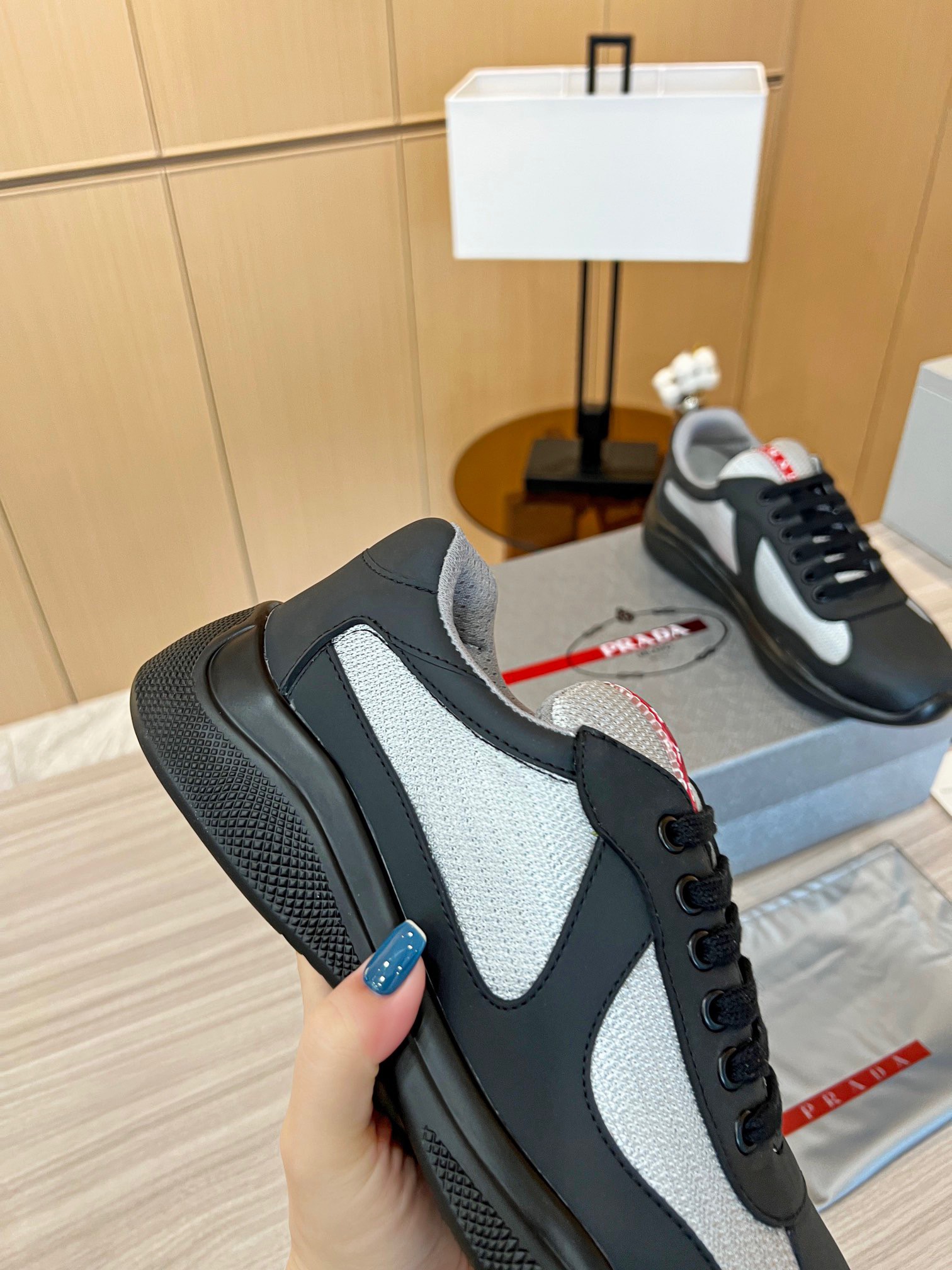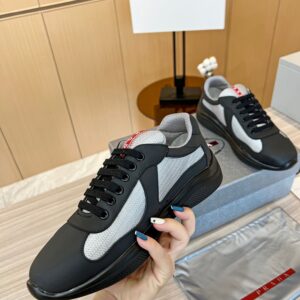 The America’s Cup sneaker, which is part of the Prada identity, is reinvented with new materials and colors that instill it with a new contemporary spirit. Originally designed in the ’90s for the Luna Rossa crew, the laced shoe inspired by the sailing world is now presented in a combination of colored rubber and bike fabric. The Prada Linea Rossa logo emphasizes the timeless attitude of this style.