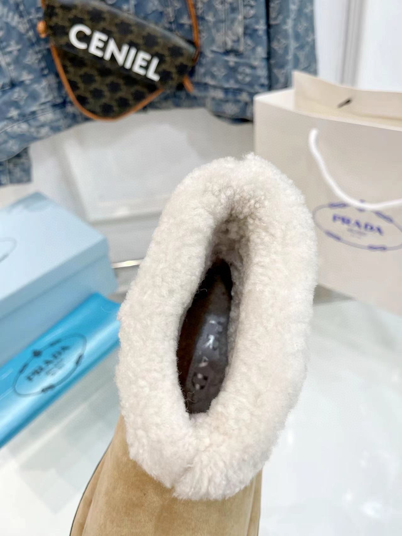 – Removable shearling-covered insole