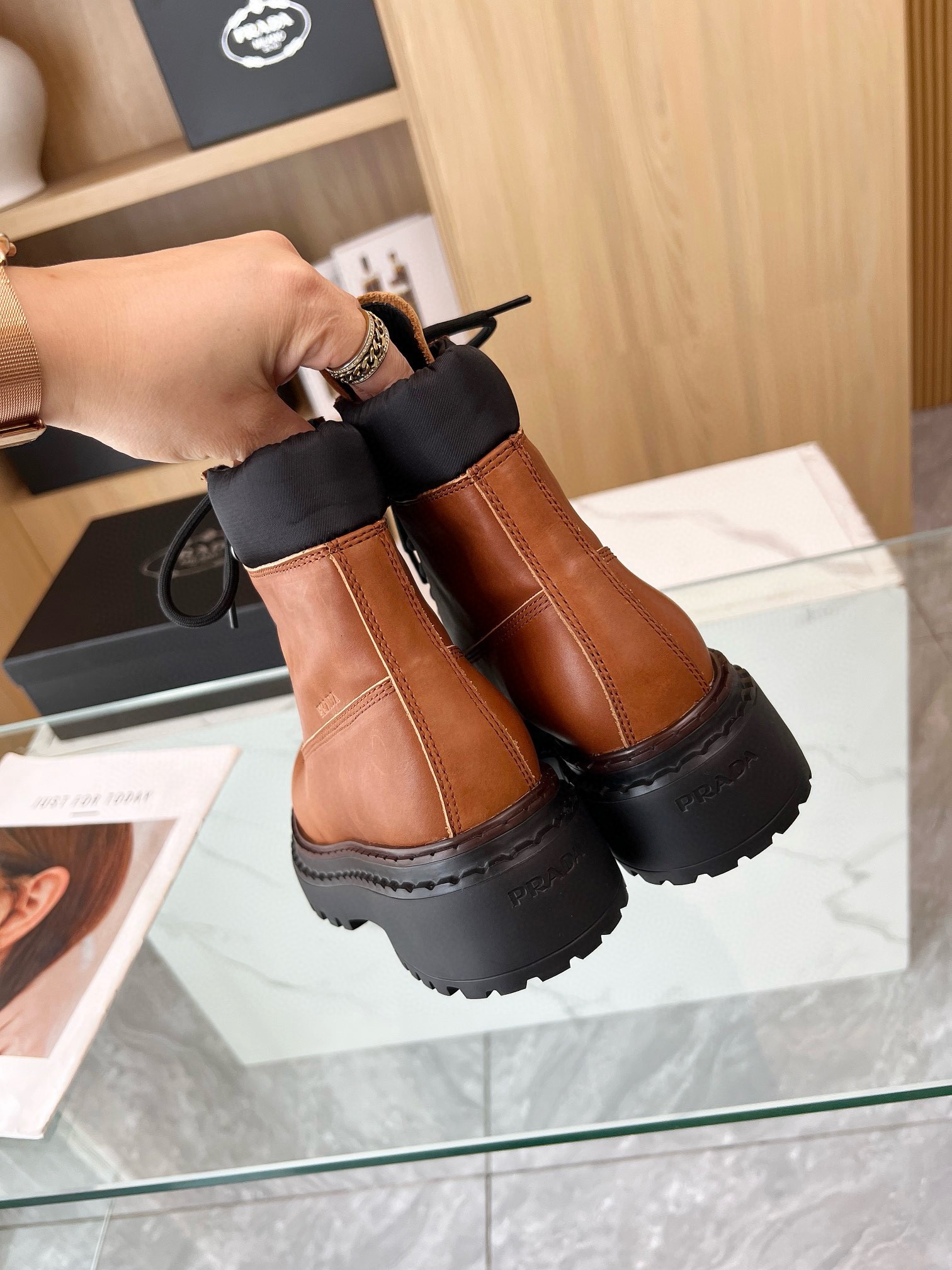 These booties made of leather with Re-Nylon details have a versatile design with sturdy yet lightweight rubber soles that complete the sporty and functional style.