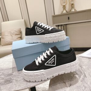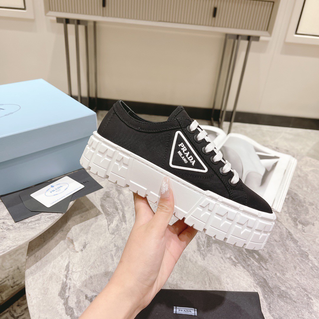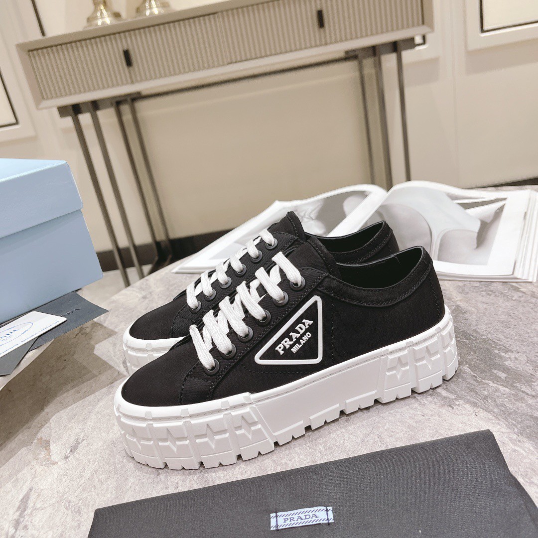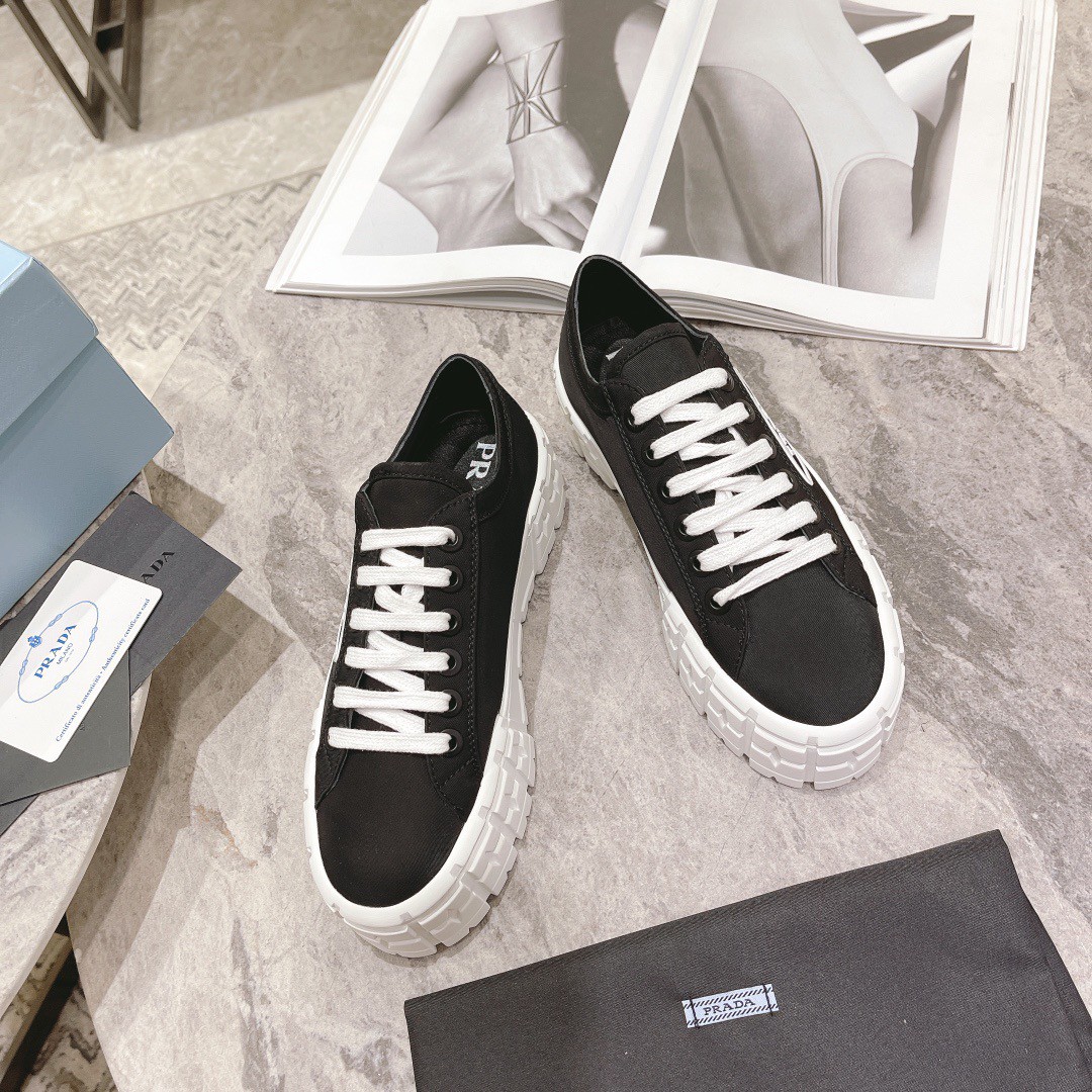 Prada Double Wheel Sneakers In Black Nylon Gabardine
