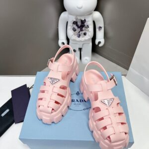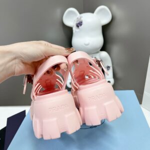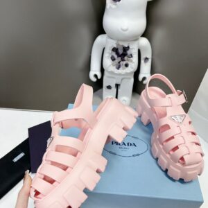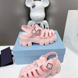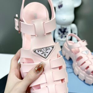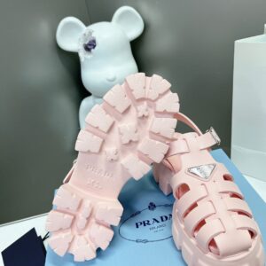 The chunky yet lightweight design of the iconic Monolith sole made of rubber is an expression of a timeless design, monolithic and unique, that reimagines Prada’s dual soul with a modernist twist. Made of rubber for a fun, contemporary look, the silhouette reinterprets retro beach footwear in a totally new way that reflect Prada’s hybrid soul.
