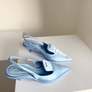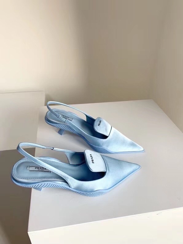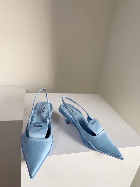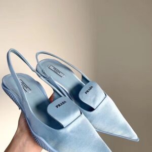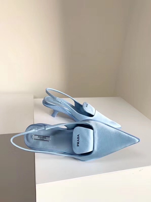 Prada Gabardine Slingback Pumps In Light Blue Nylon