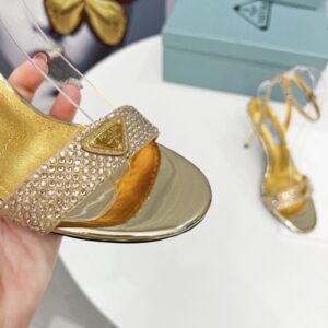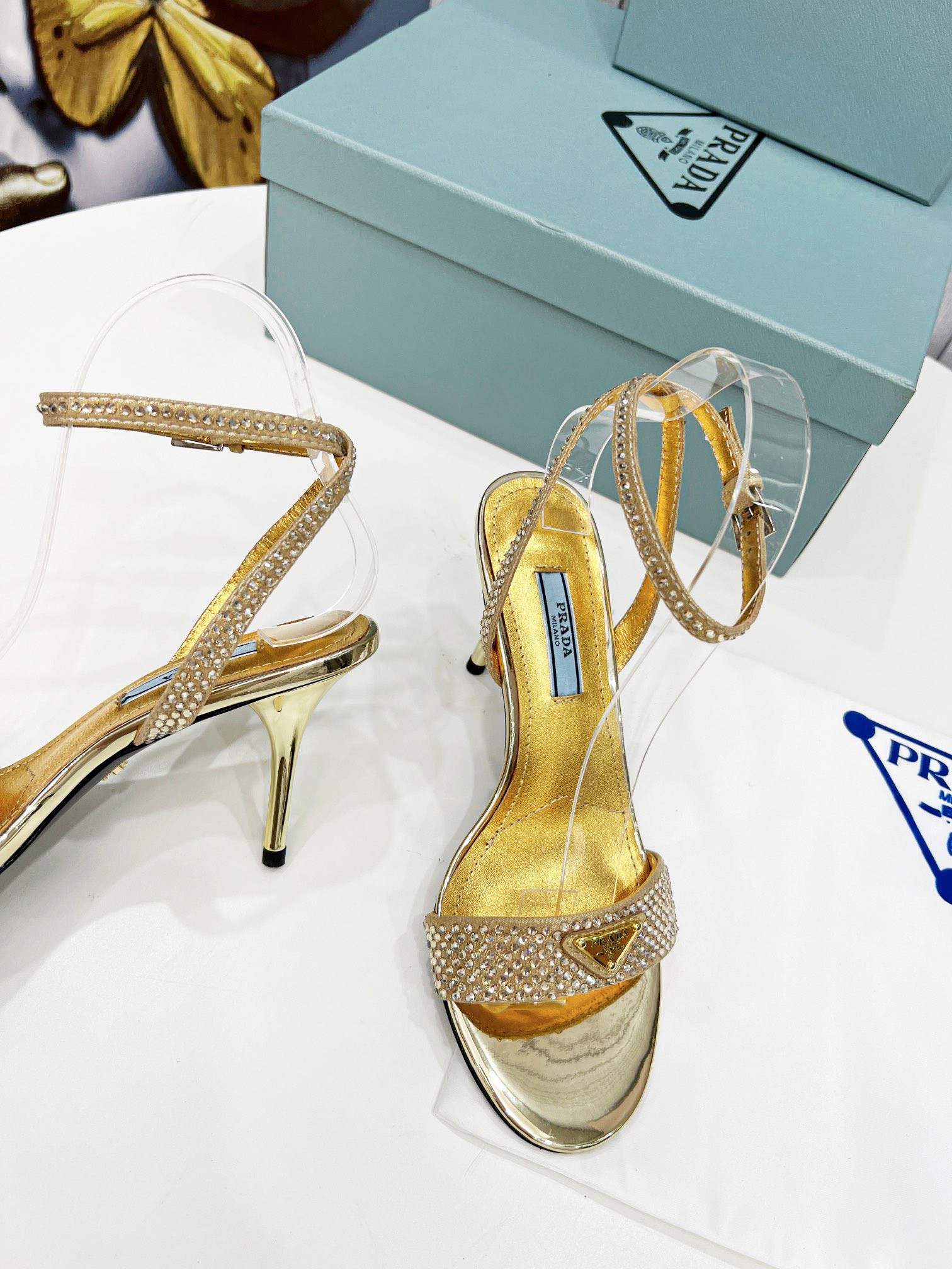 These elegant, feminine satin sandals stand out for the band decorated with sparkling crystals. A 85 mm stiletto heel completes the shoe.