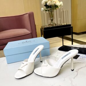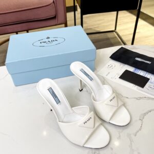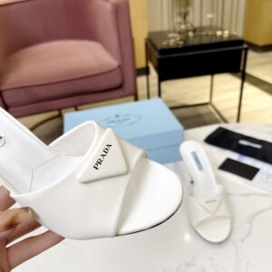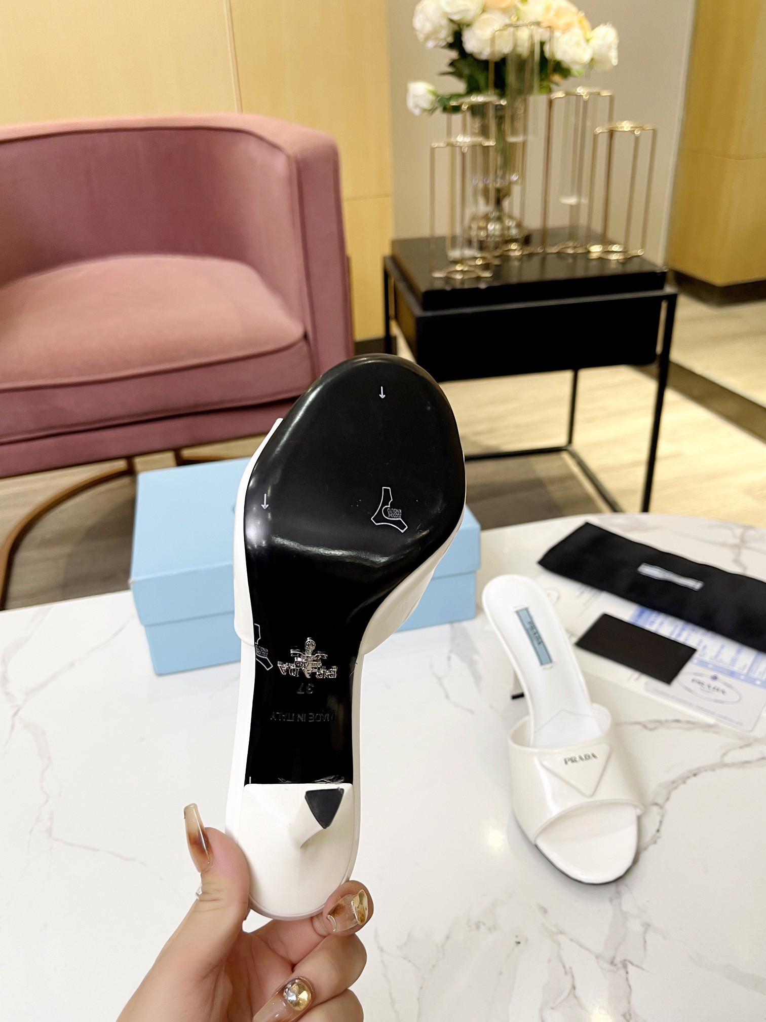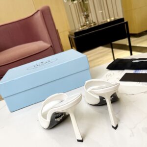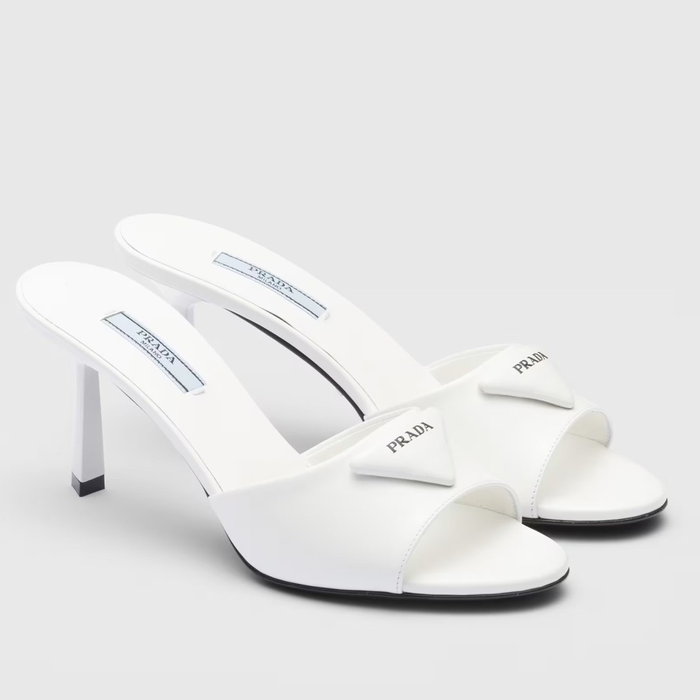 Prada Heeled Sandals 75mm in White Brushed Leather