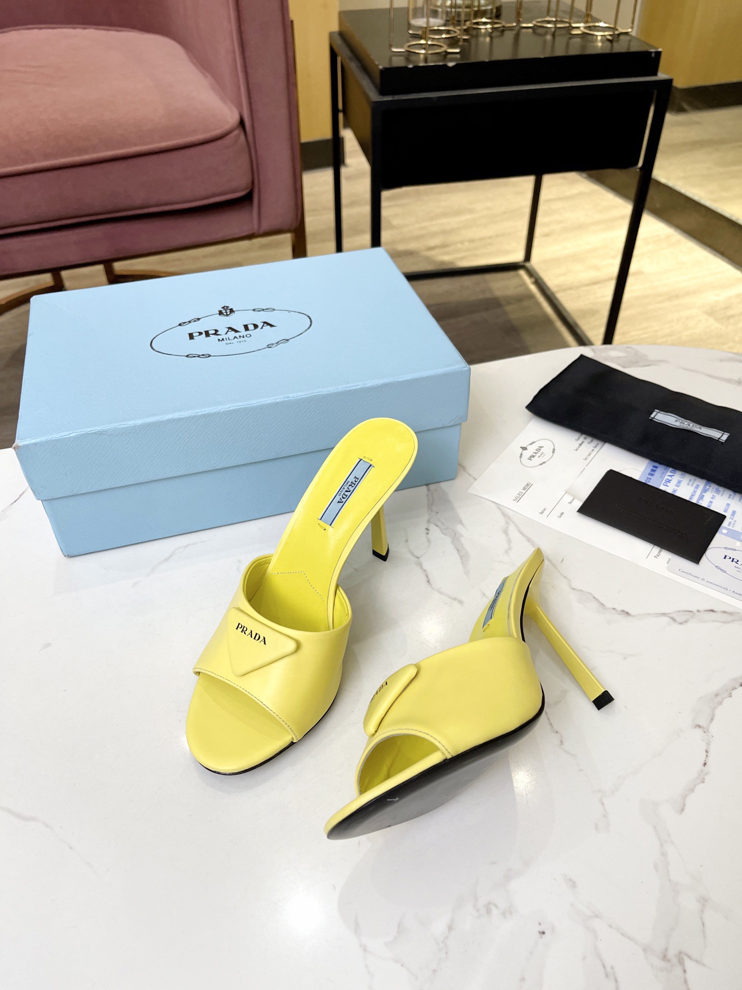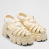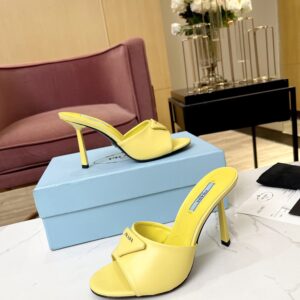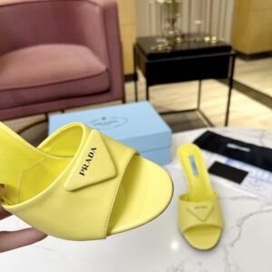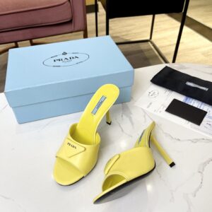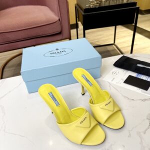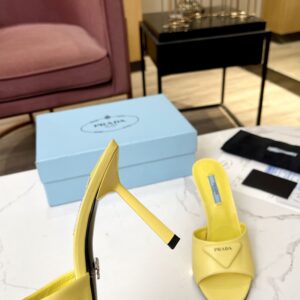 Prada Heeled Sandals 75mm in Yellow Brushed Leather