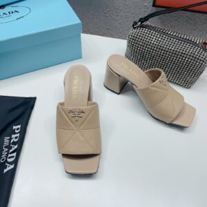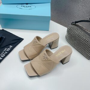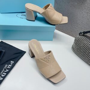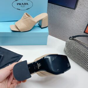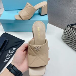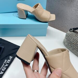 Prada Heeled Slide Sandals 65mm In Beige Nappa Leather