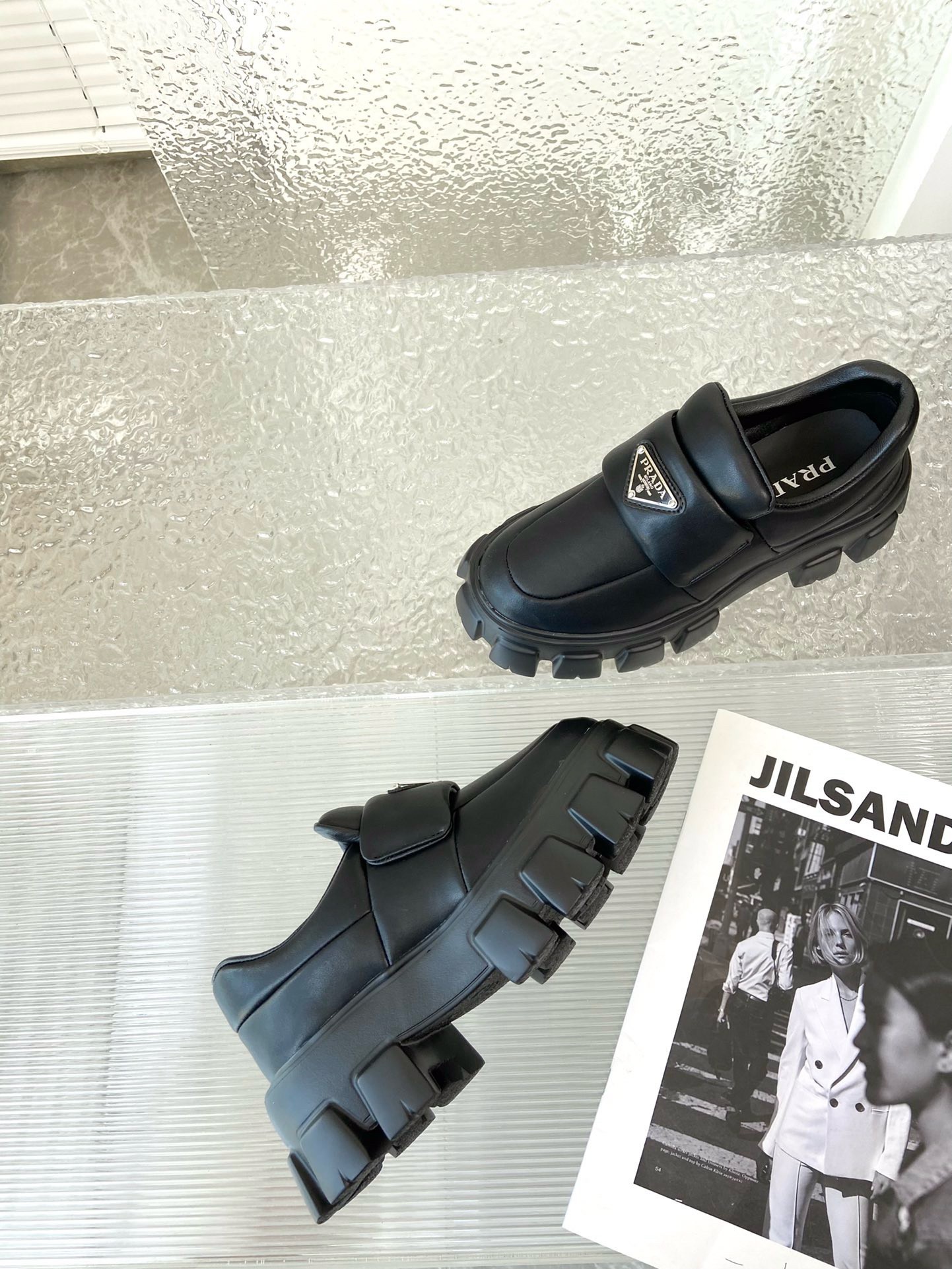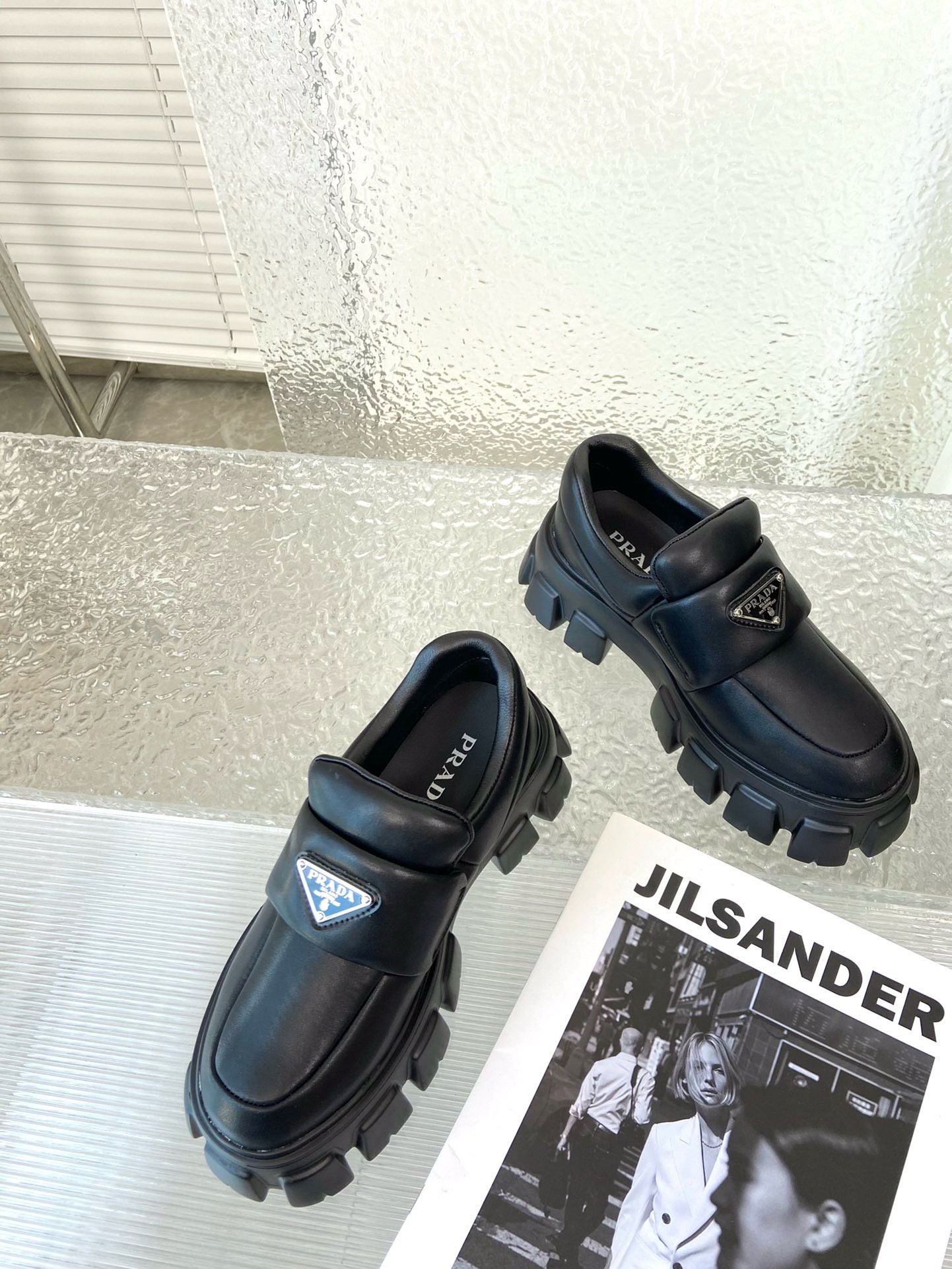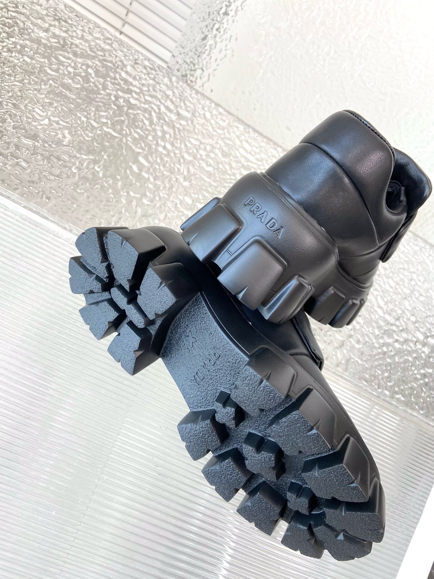 These loafers with a hybrid design highlight Prada’s duality concept, fundamental in the aesthetic of the brand. The maxi modernist sole with a unique, monolithic design is paired with an upper in soft padded nappa leather with a sophisticated look. A contrasting yet harmonious soul characterizes the shoe that unites diametrically opposed images to create timeless silhouettes.