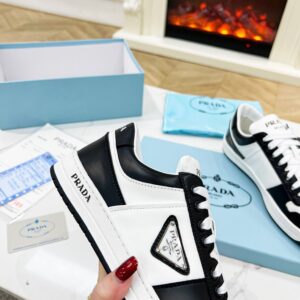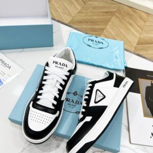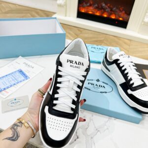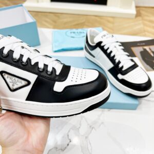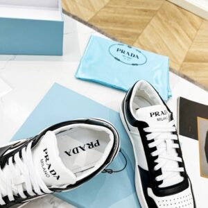 Prada Men’s Downtown Sneakers in White and Black Leather