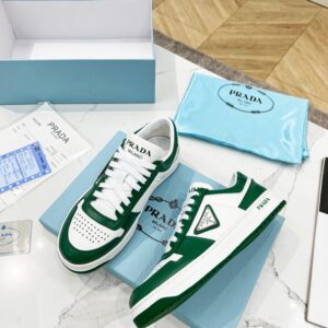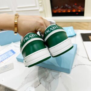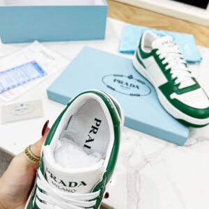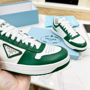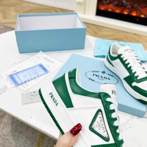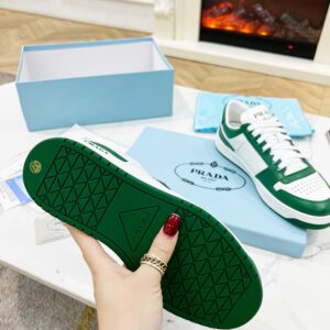 Prada Men’s Downtown Sneakers in White and Green Leather