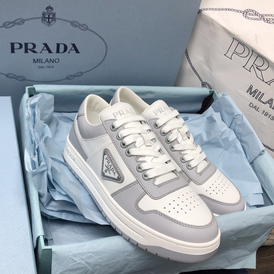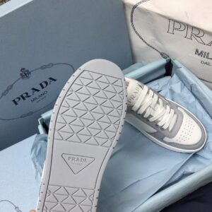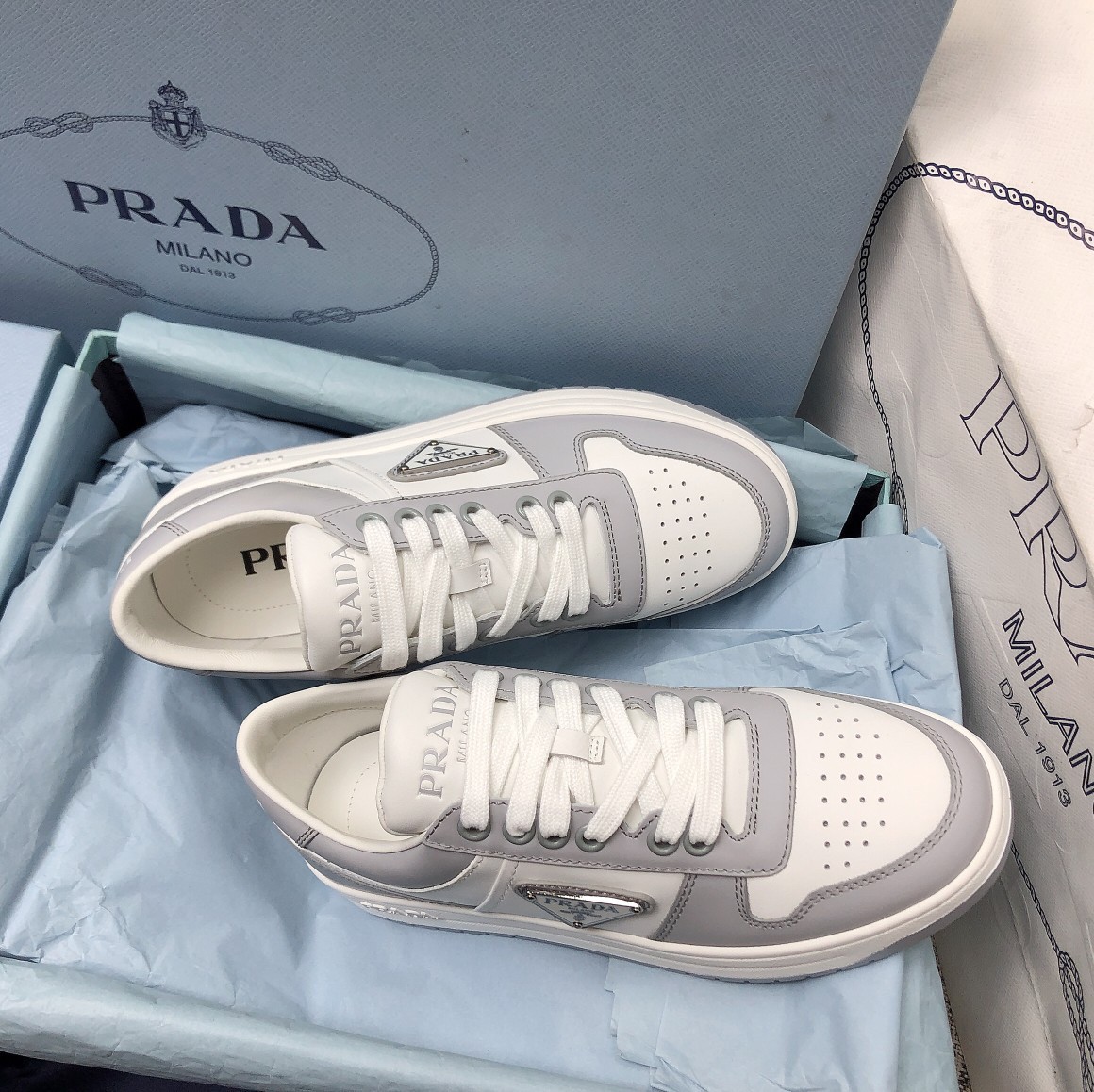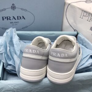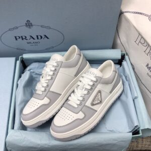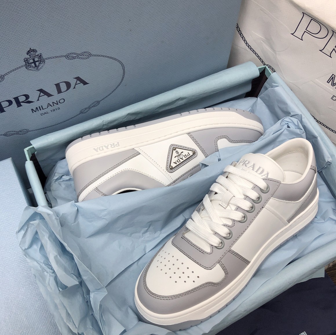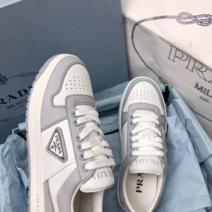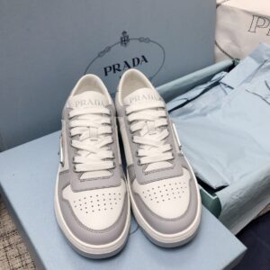 Prada Men’s Downtown Sneakers in White and Grey Leather