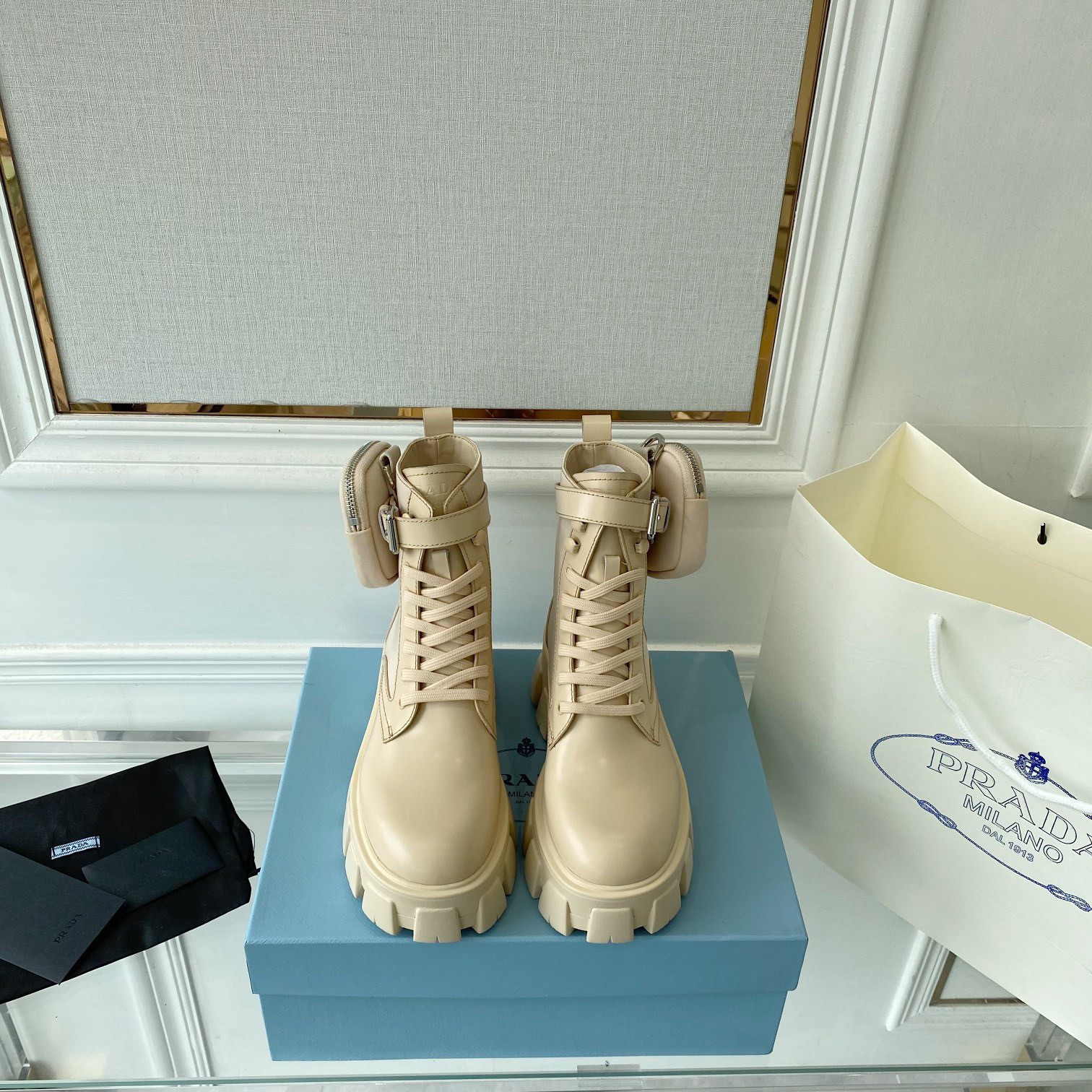 Prada Monolith Boots in Beige Leather and Nylon Fabric