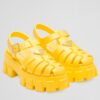 The iconic Monolith style is reimagined for the summer season. Sophisticated crochet and fine artisan workmanship meet in this sporty design with oversized volumes. New experimentation and tradition are embodied by the distinctive details of the shoe like the metal triangle logo.