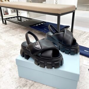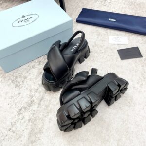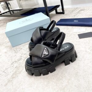 Prada Monolith Padded Sandals In Black Nappa Leather