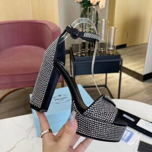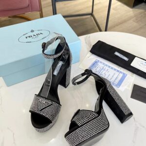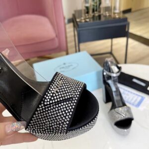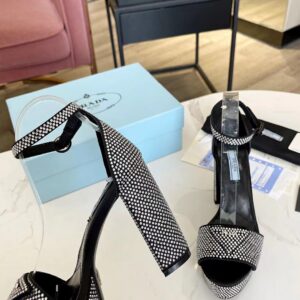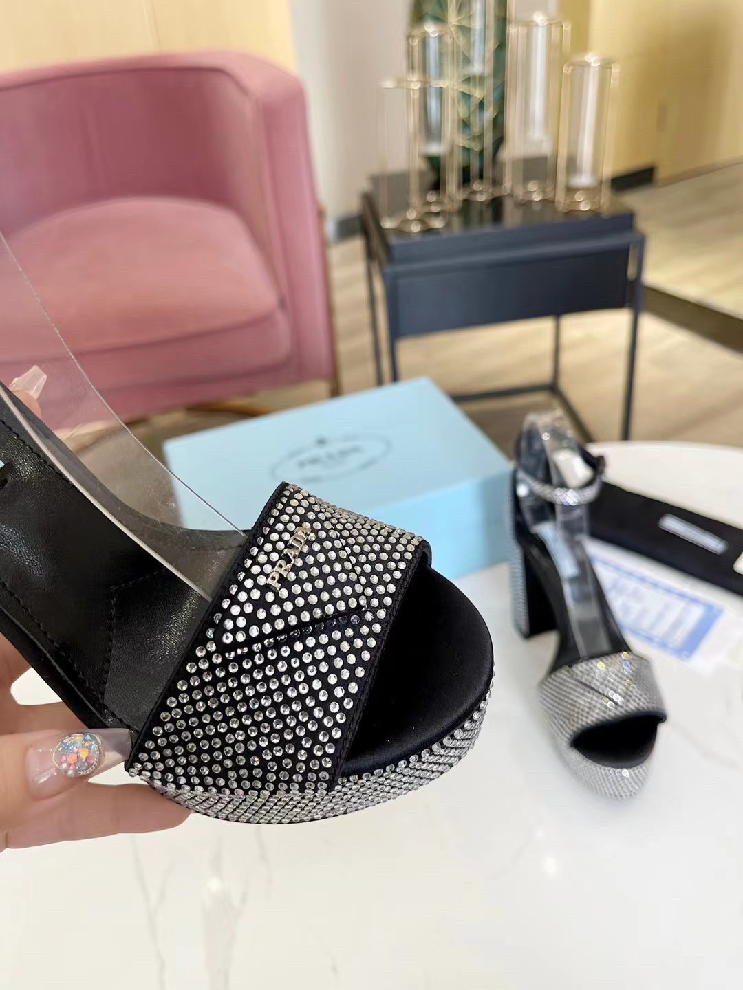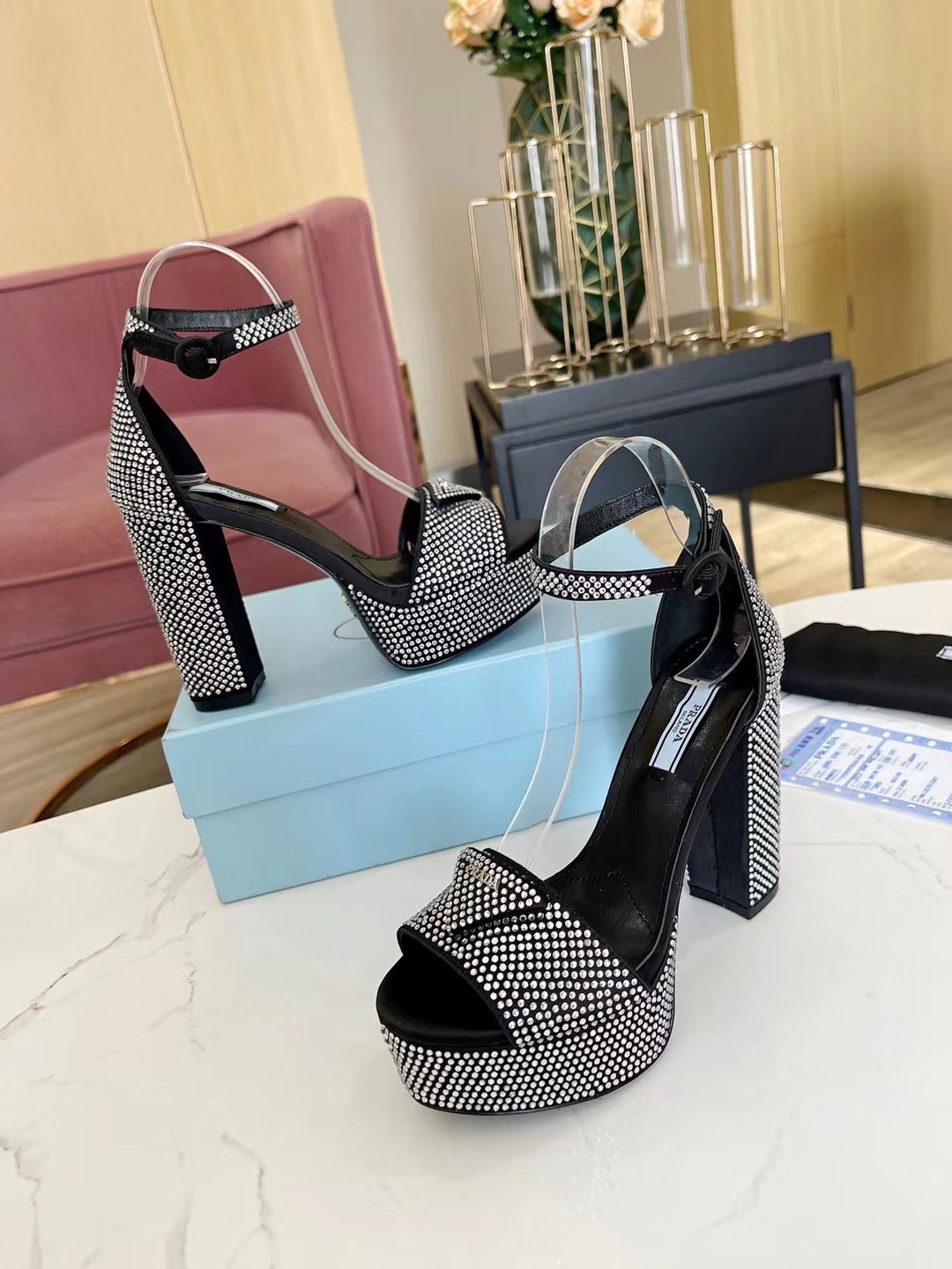 Prada Platform Sandals 135mm in Black Satin with Crystals