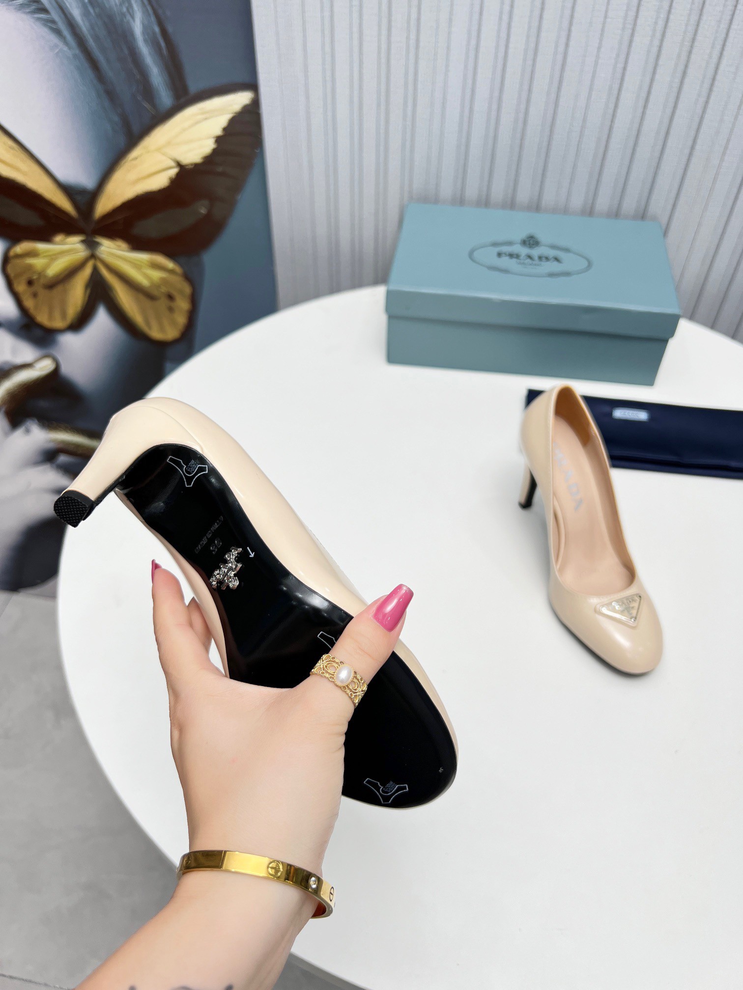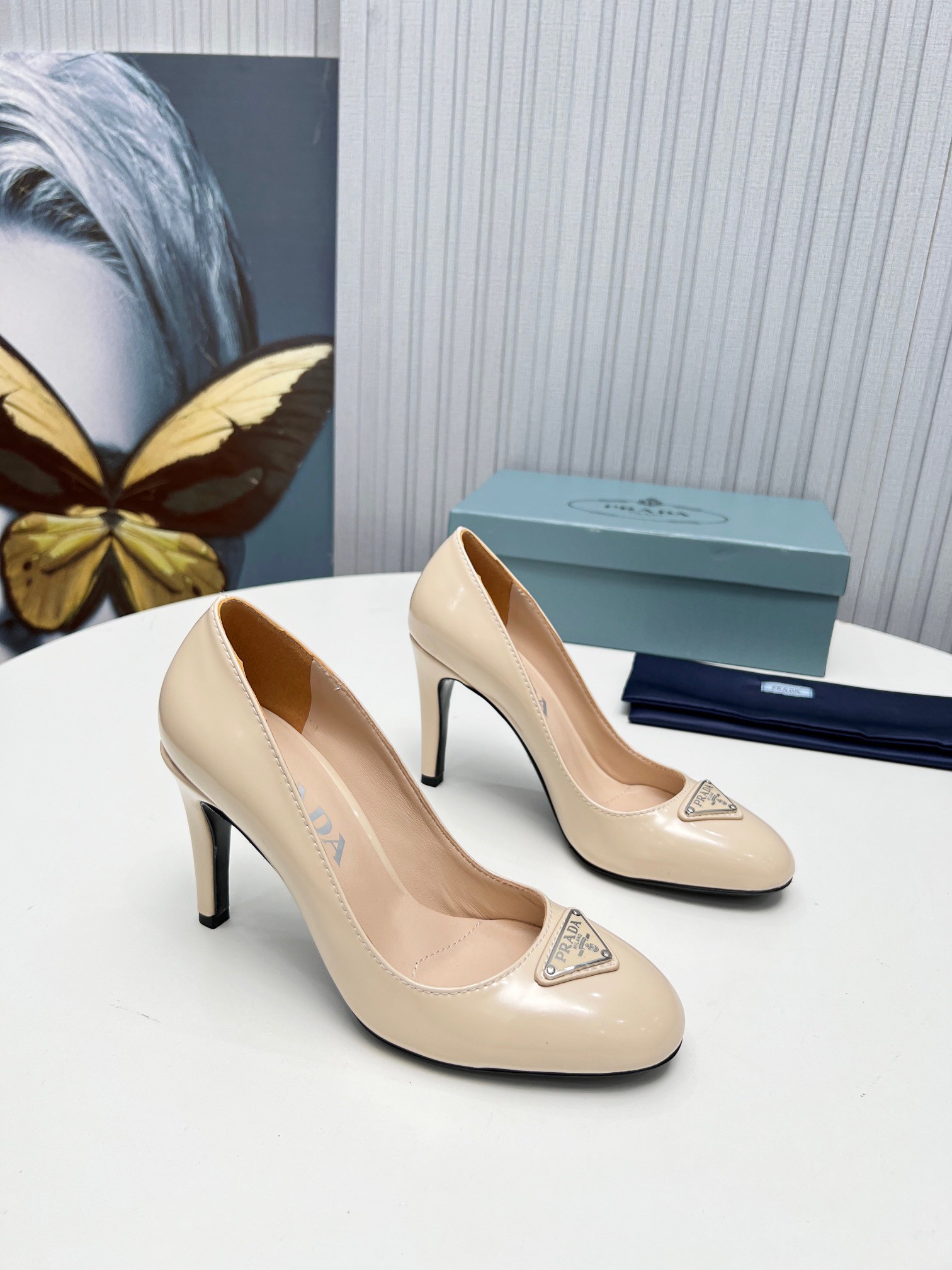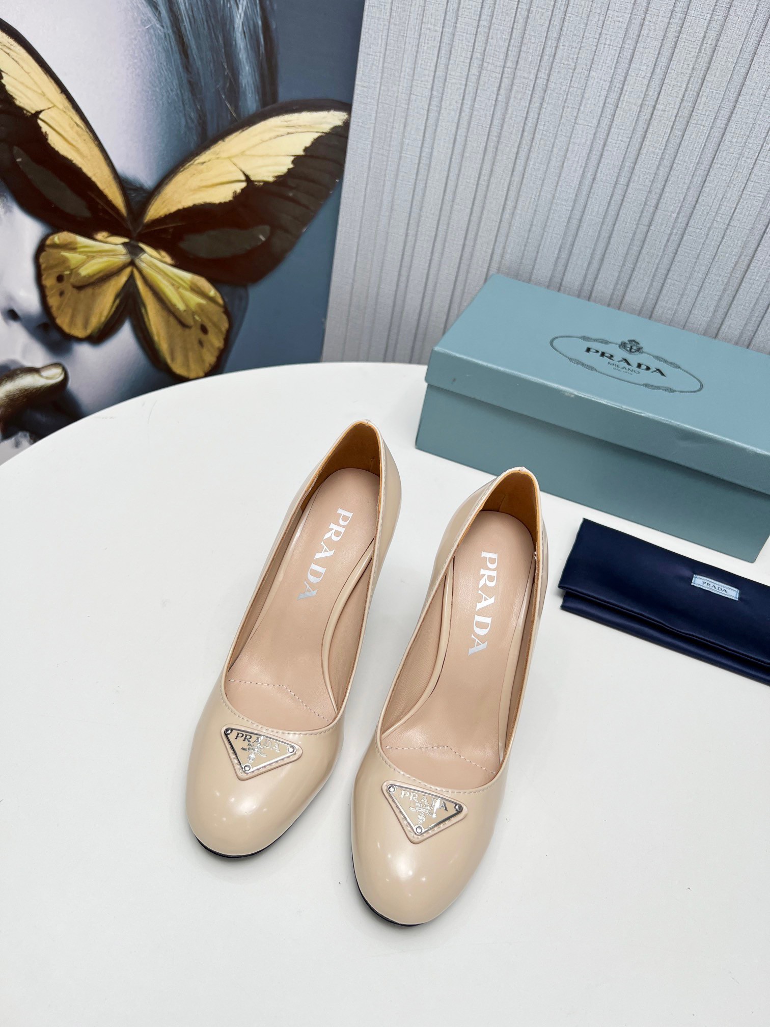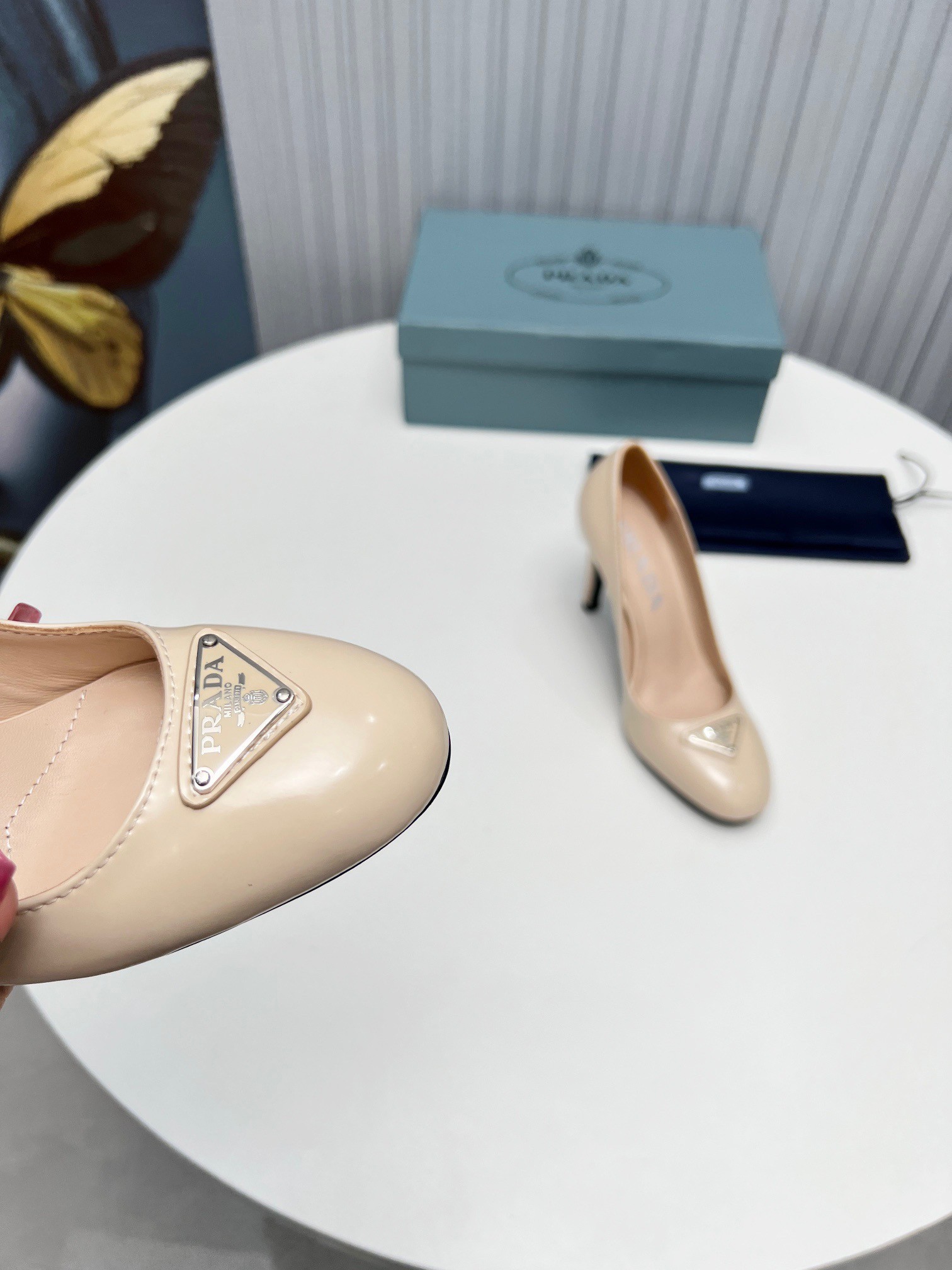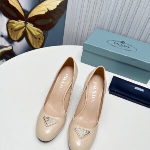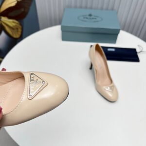A delightful bon ton line defines this style given a contemporary update. These pumps in patent leather express timeless elegance, which is typical of Prada designs.