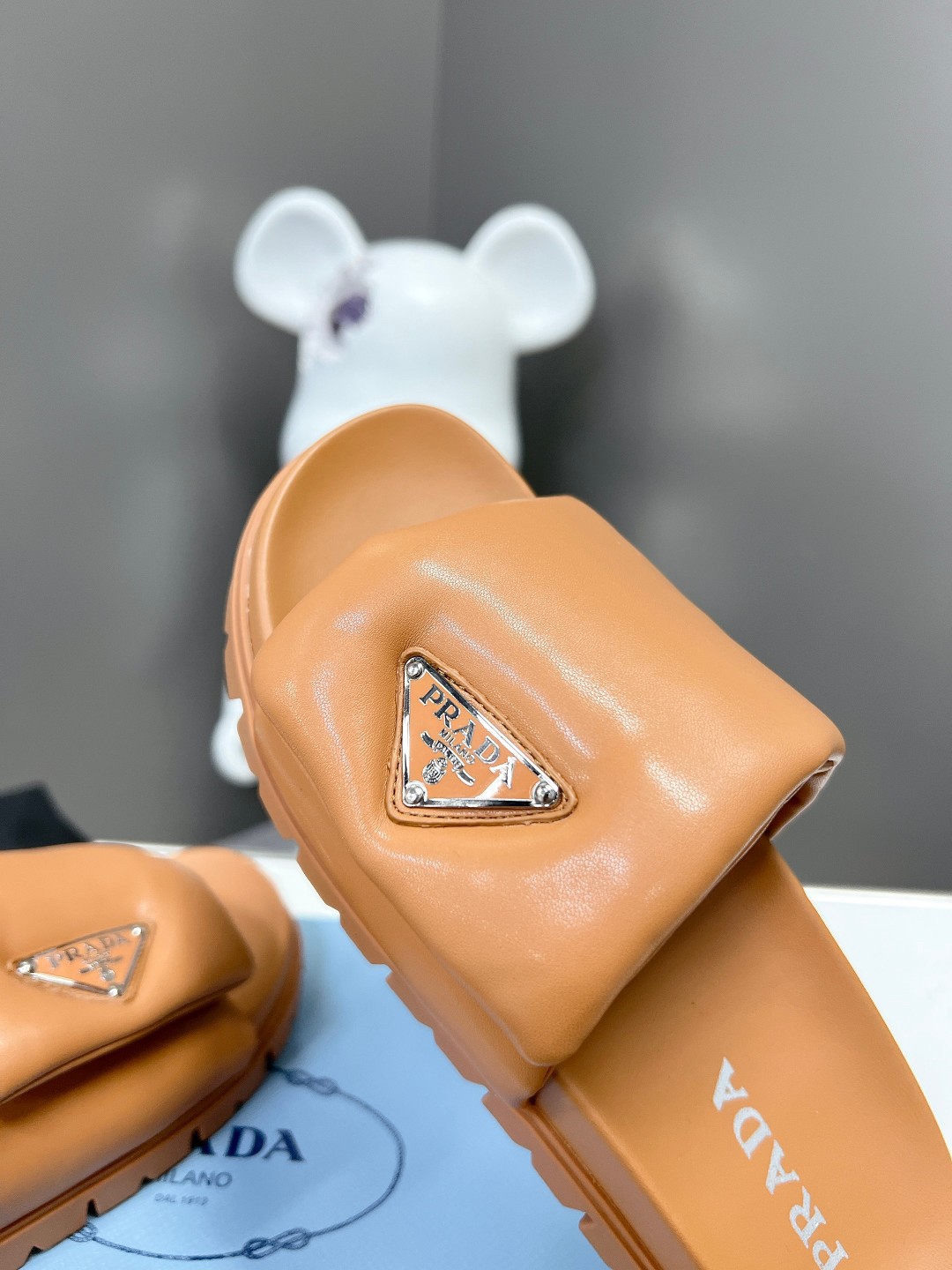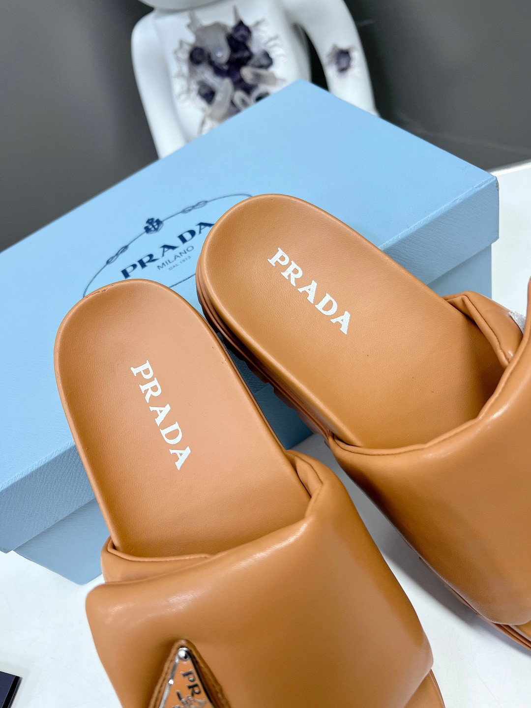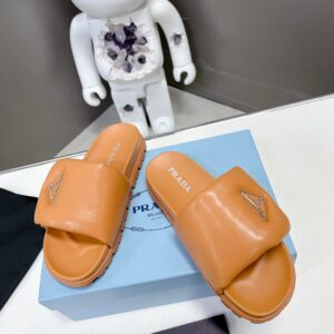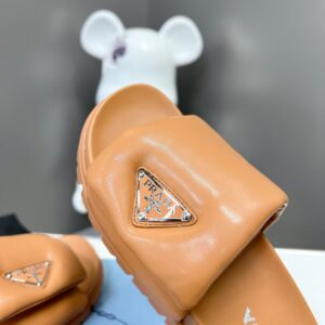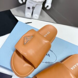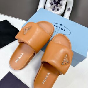 Prada Slides In Brown Soft Padded Nappa Leather