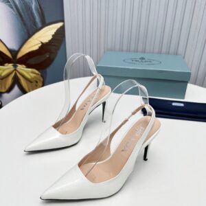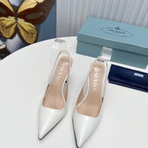 Prada Slingbacks Pumps 95mm In White Patent Leather