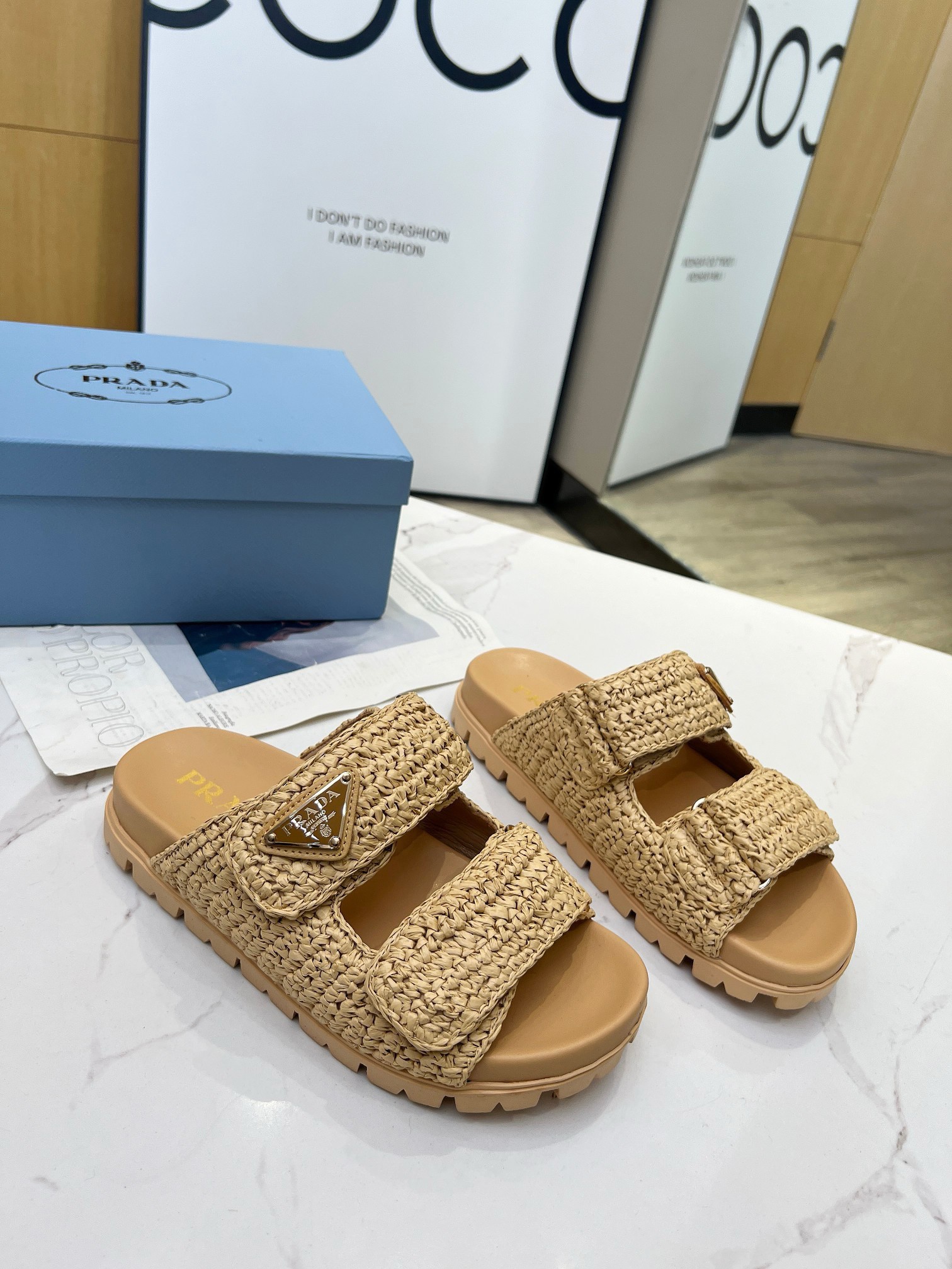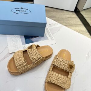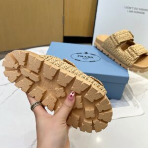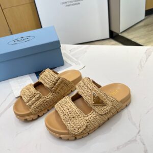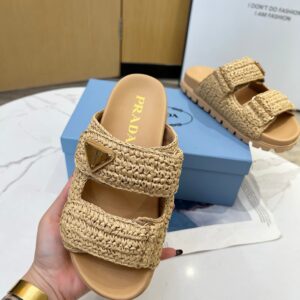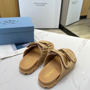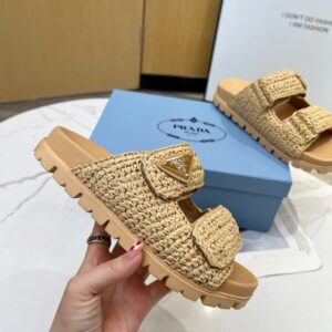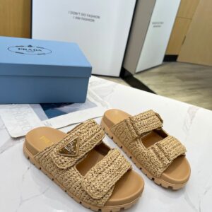 The contemporary, sporty design of these sandals is enhanced by the crochet’s texture, which evokes a summery mood, giving the design a unique touch. The versatile footwear, characterized by hook-and-loop straps and a rubber sole with lug tread, is enhanced by the enameled metal triangle logo.