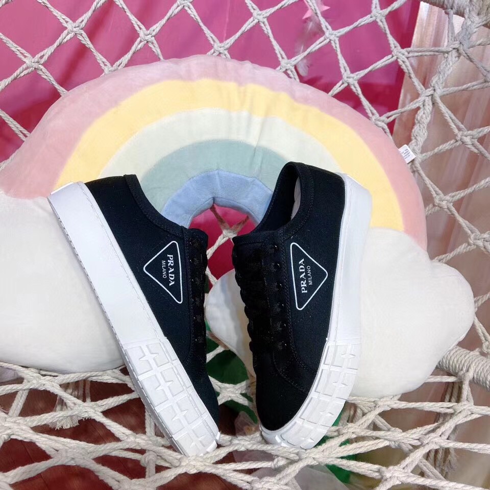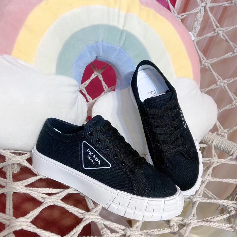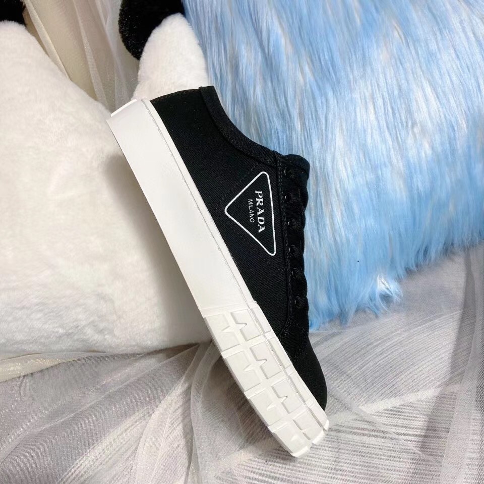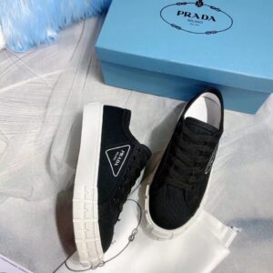 Prada’s chunky sneakers grounded so many outfits at the brand’s Resort ’20 show, from midi skirts to floaty dresses. They’re made from durable gabardine printed with signature triangular logos and have embossed rubber soles. Take your cue from the playful runway styling and wear yours with striped socks.