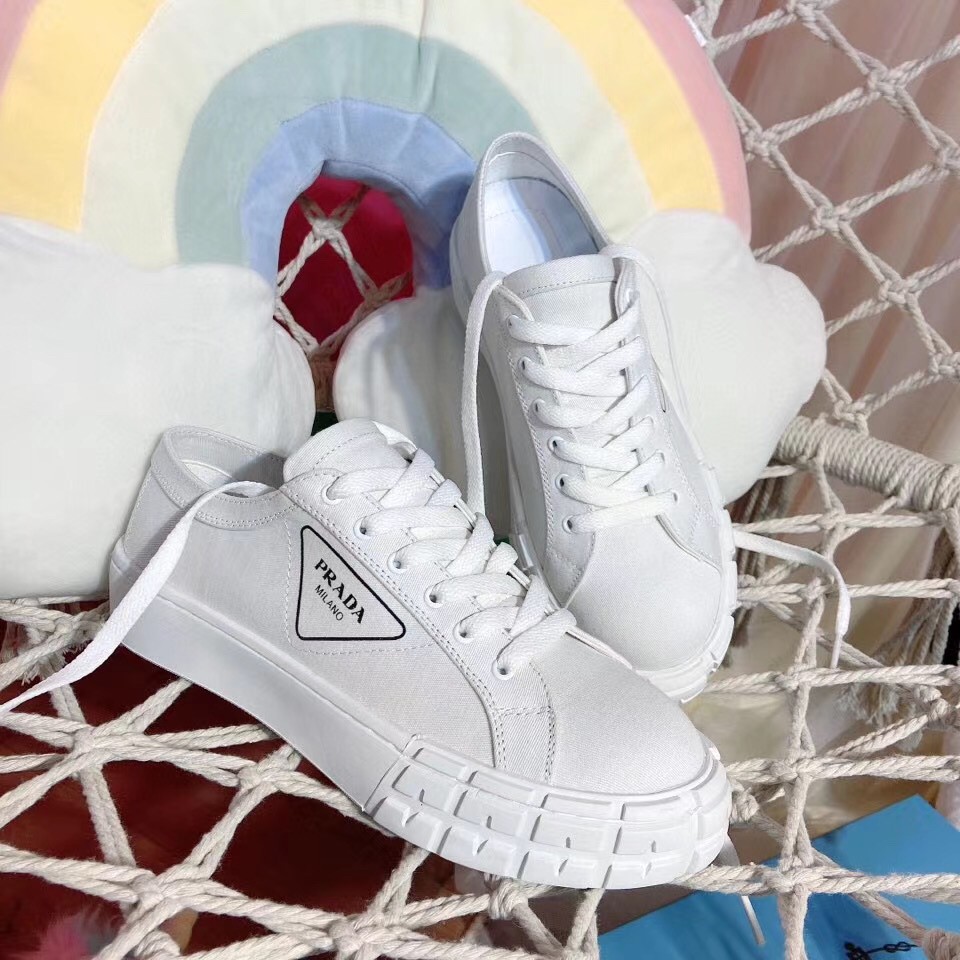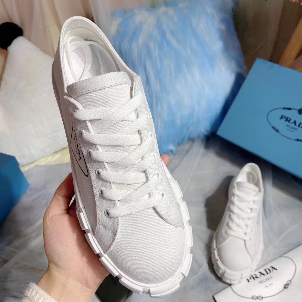 Prada Women’s Low-top Sneakers In White Gabardine Fabric