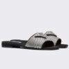 Delicate tonal stitching enhances the design of these soft nappa leather slides. The footwear with a bold, sporty look is decorated with the metal lettering logo framed by one of the geometric stitched elements. This pair has molded footbeds and lugged soles for everyday comfort and practicality.