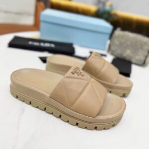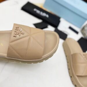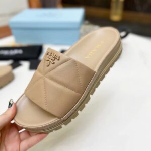 Prada Women’s Slides In Beige Quilted Nappa Leather
