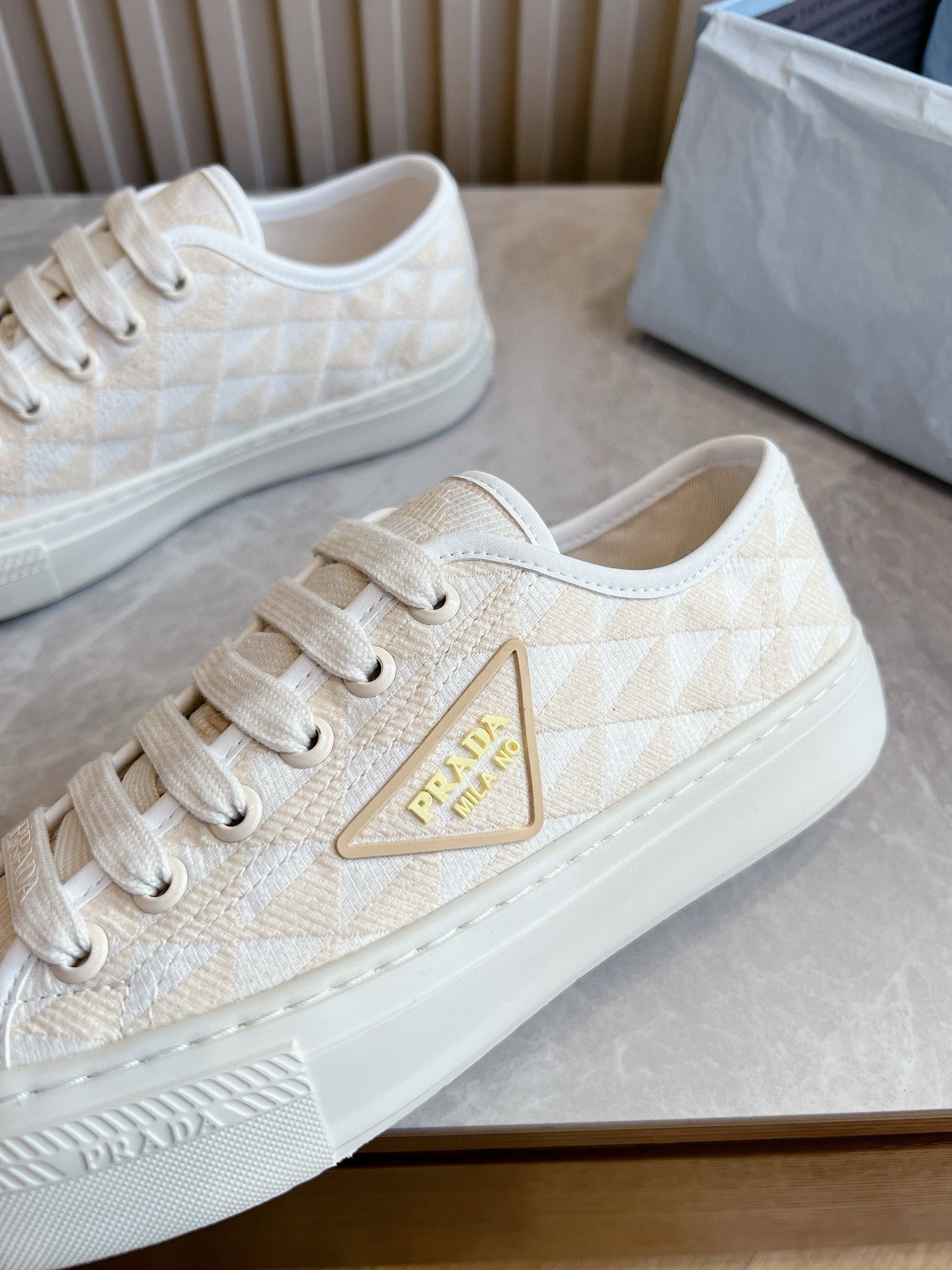 These fabric sneakers with a sporty design and clean, classic lines are defined by their contemporary, minimalist details. The versatile and casual style characterized by a light rubber sole features a modern interpretation of the triangle logo reinterpreted in rubber and applied to the upper in the same color.