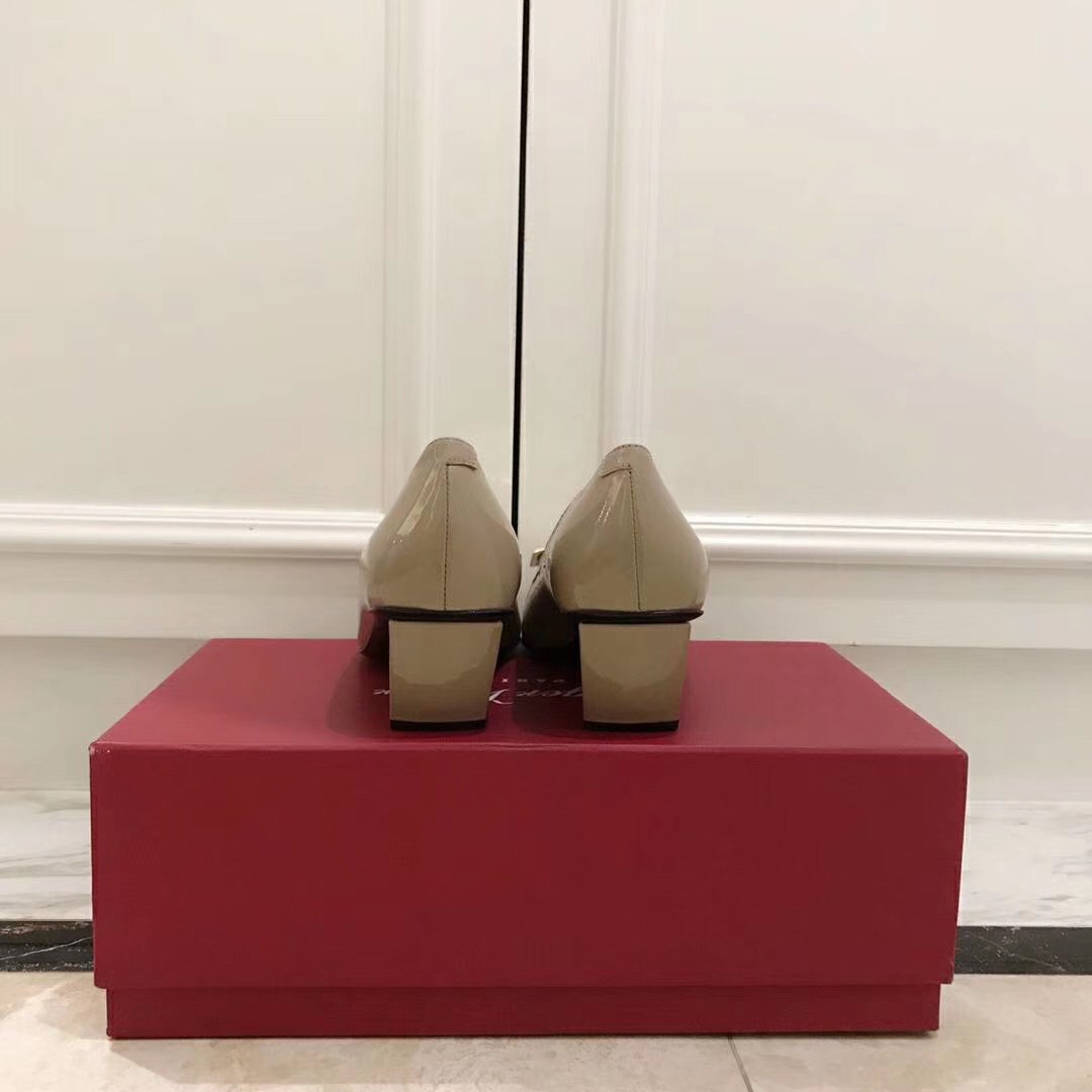 Roger Vivier Belle Vivier 45mm Pumps In Beige Patent Leather