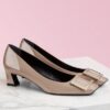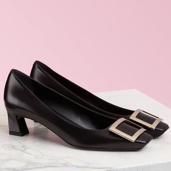 Set on signature 45mm “Skyscraper” heels, the Belle Vivier pumps are testament to Roger Vivier’s elegant approach to design. Crafted from smooth calfskin, the silhouette features a square toe bearing the logo-engraved buckle synonymous with the footwear label.