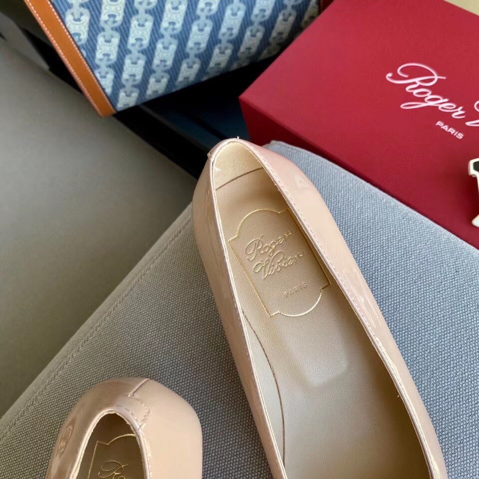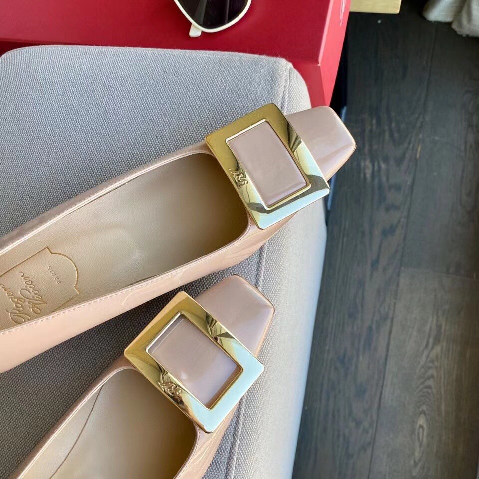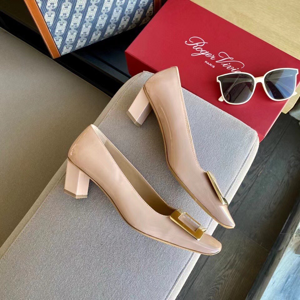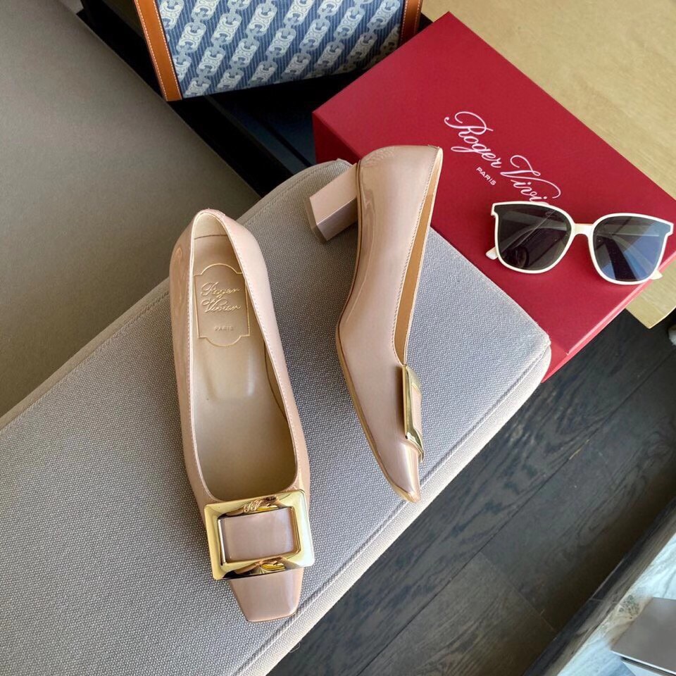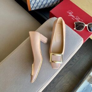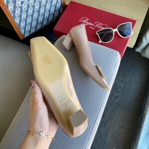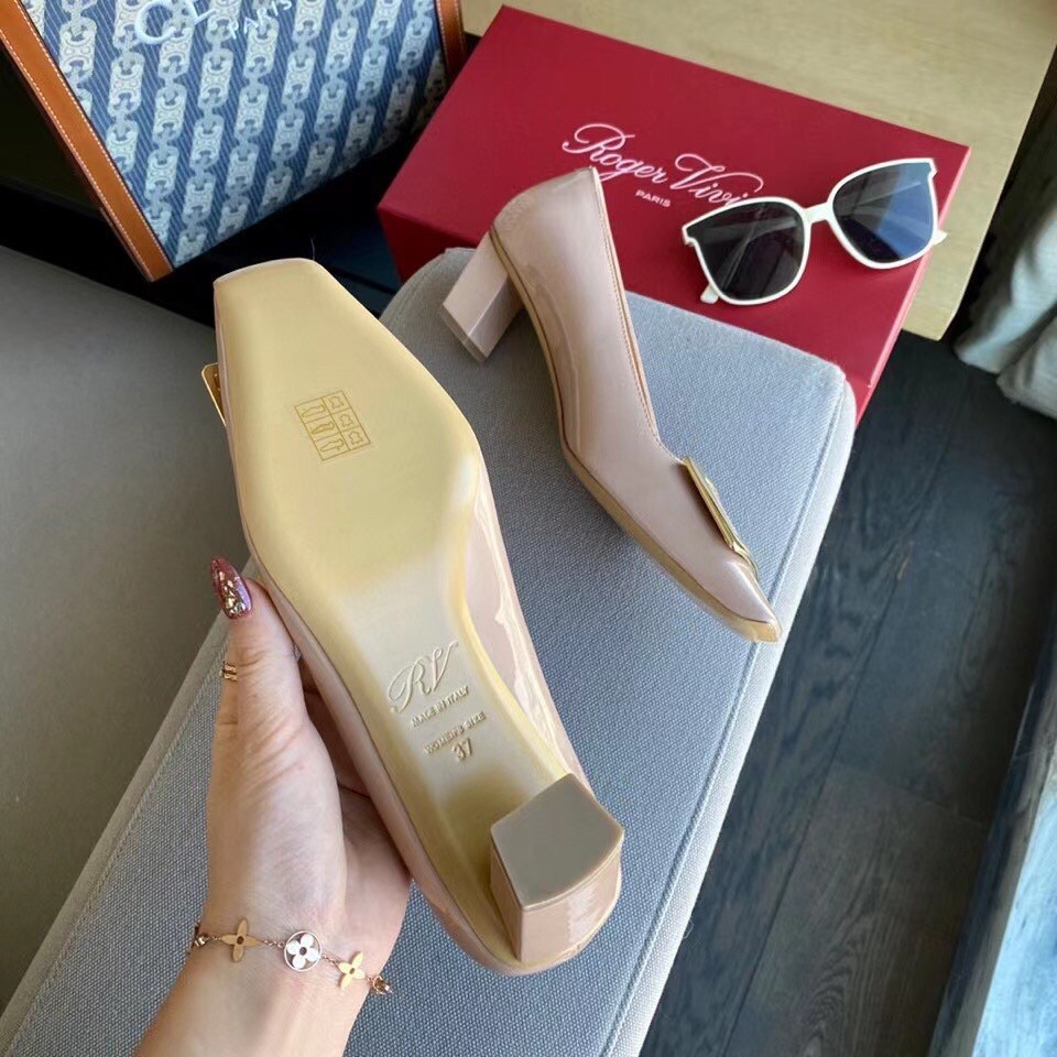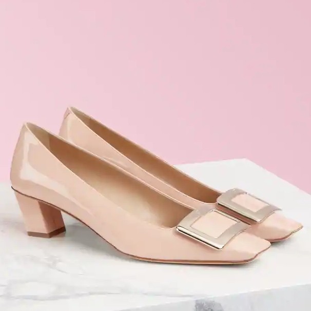 Set on signature 45mm “Skyscraper” heels, the Belle Vivier pumps are testament to Roger Vivier’s elegant approach to design. Crafted from glossy patent calfskin, the silhouette features a square toe bearing the logo-engraved buckle synonymous with the footwear label.