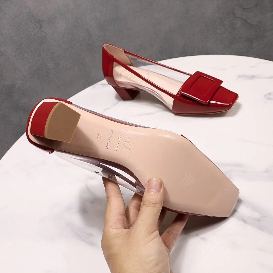 Encompassing the label’s signature style with a provocative twist, these Roger Vivier pumps offer effortlessly styling options to your transeasonal wardrobe. Crafted with an angled block heel, the low-cut silhouette works to lengthen the leg, while the mid-shoe is transparent, revealing just a hint of skin.