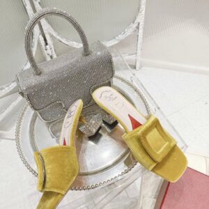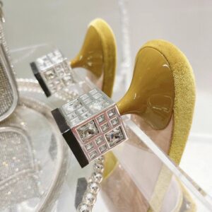 Taking its cue from the iconic Marlène heel, the Cube Strass Heel Mule features a geometric reinterpretation of the boule strass heel. Finely hand crafted in luxurious velvet, this stylish pair also features the Maison’s signature heart on the insole.