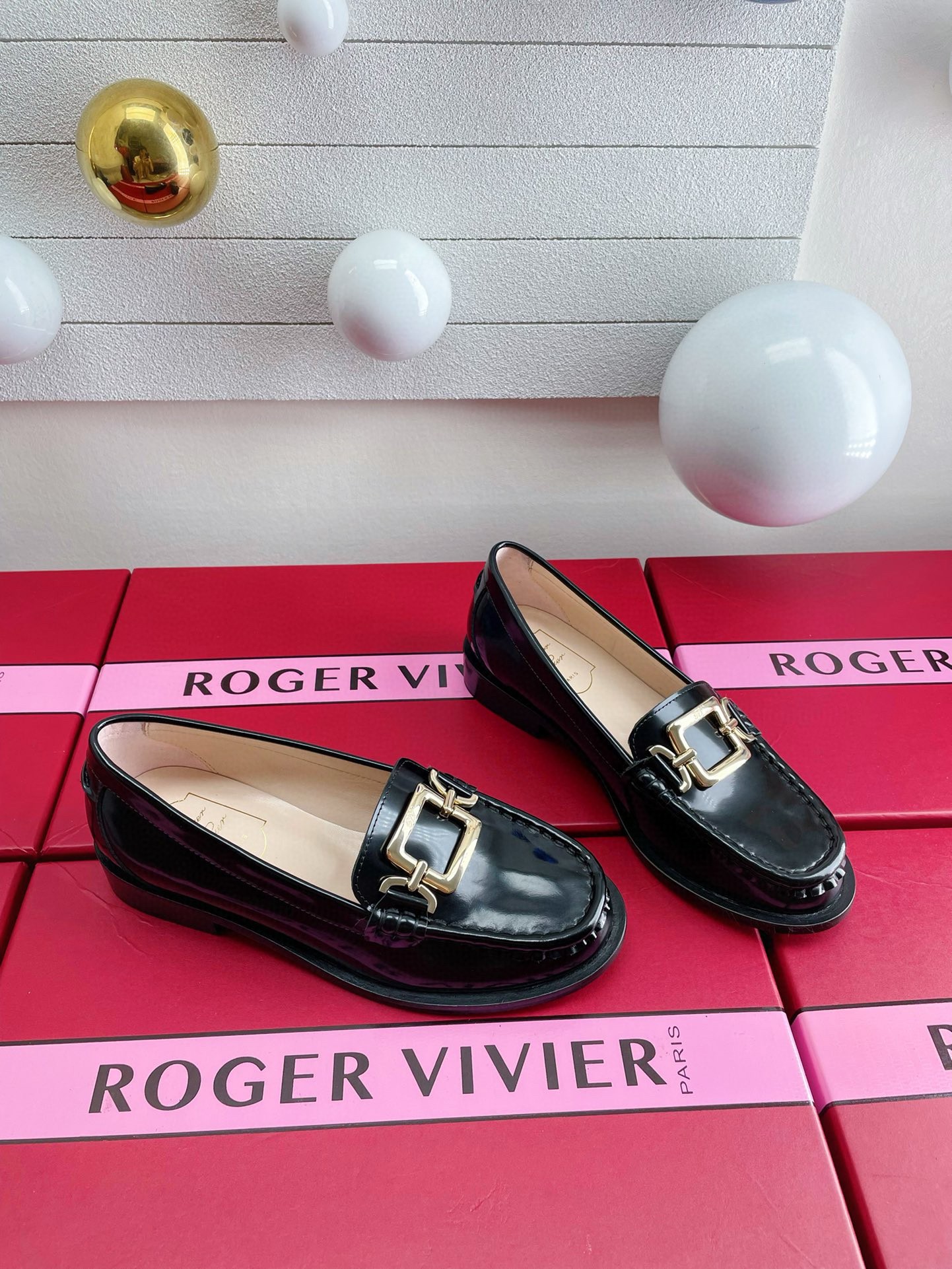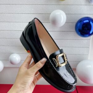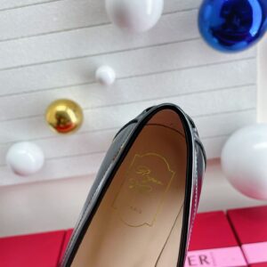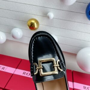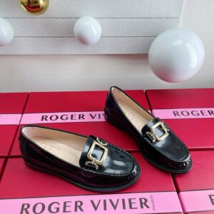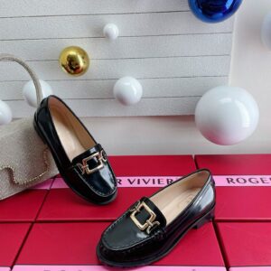 Roger Vivier Metal Buckle Morsetto Loafers in Black Patent Leather