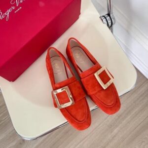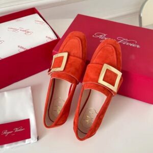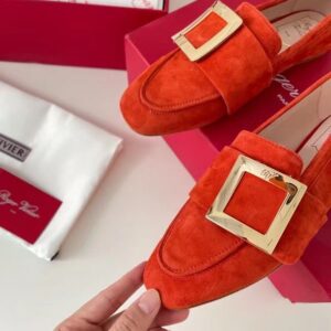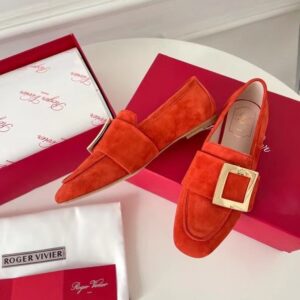 A certified classic from Roger Vivier, the Viv’ Driver loafers feature a number of brand signatures. Made from orange suede leather, it features a square toe and monogram-engraved buckles.