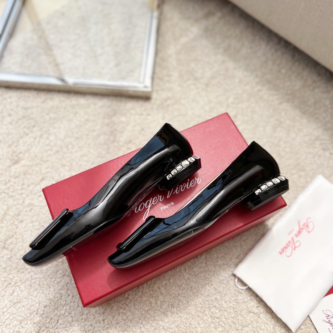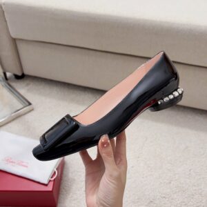Monsieur Roger Vivier pioneered the reinterpretation of footwear as an authentic jewel. The designer’s treasured archive was also the inspiration for the Strass Heel, a refined low heel with a circular shape and shiny rhinestones. Crafted in patent leather, the Strass Heel Covered Buckle Ballerinas combine this new Maison emblem with an elegant ton sur ton buckle.
