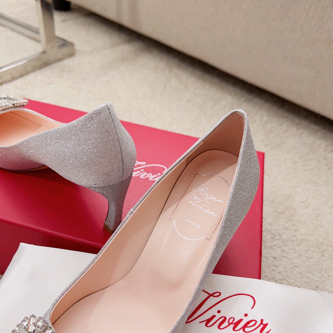 Roger Vivier Trompette Crystal Buckle Pumps in Glitter Fabrics