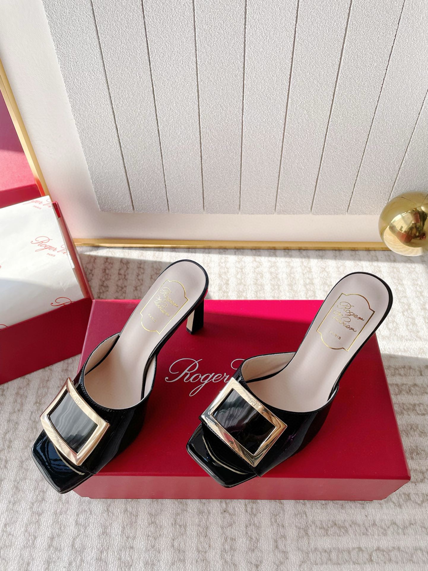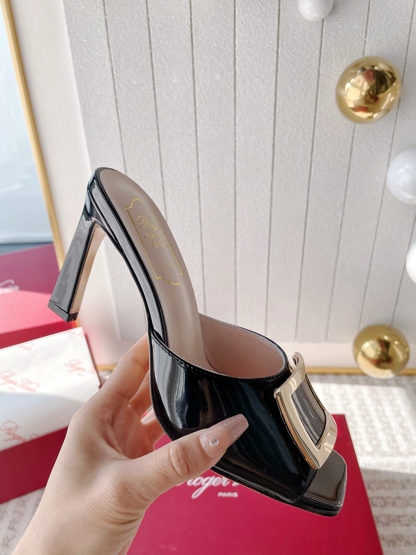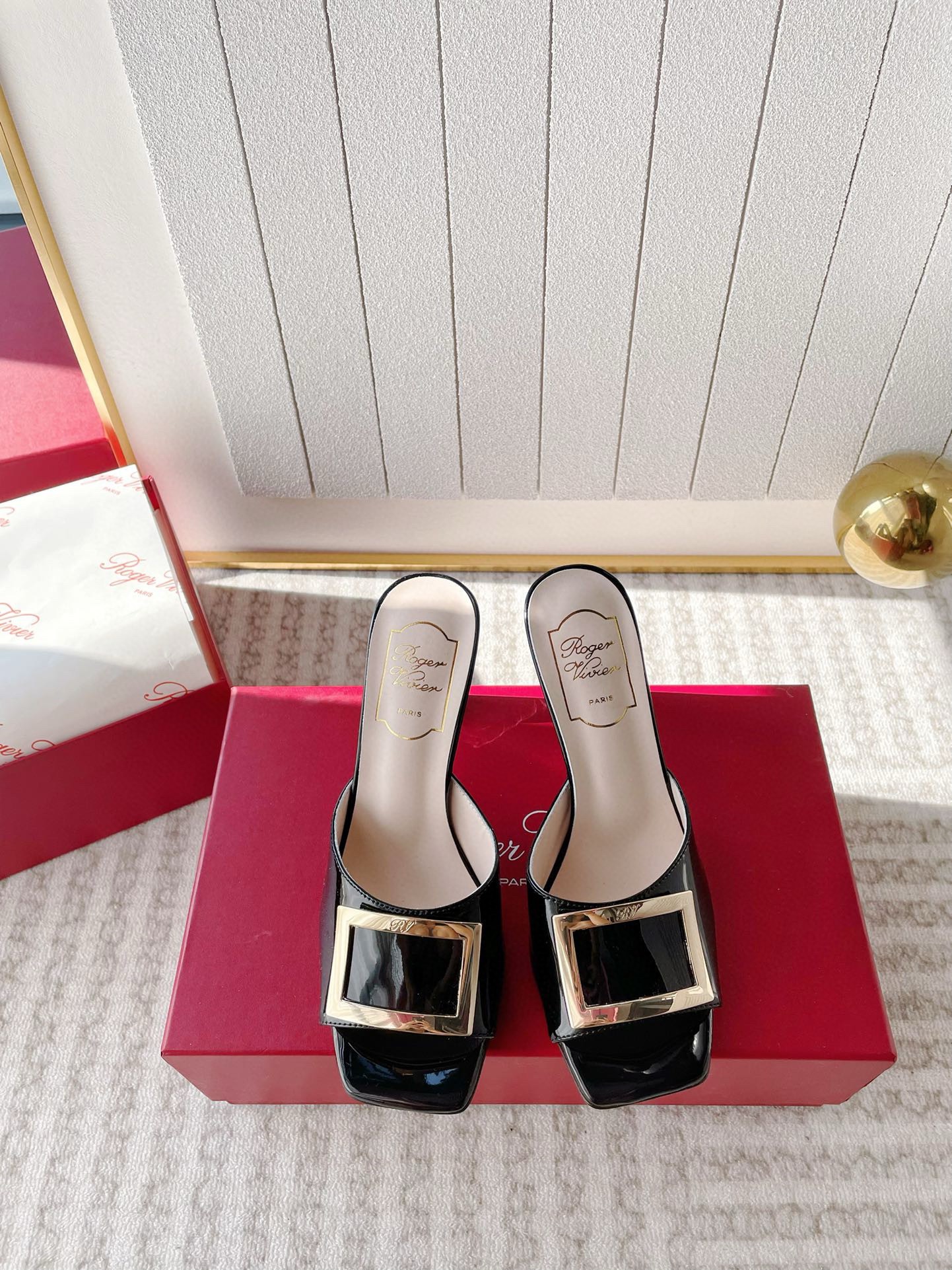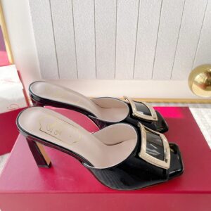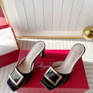 Inspired by the 1970s, the Trompette heel interprets a precise style statement with its curved shape that widens slightly downward. Fashioned in glossy patent leather, the Trompette Metal Buckle Mules come with this distinctive sign of the Maison. A feminine and versatile creation, with an iconic silhouette.