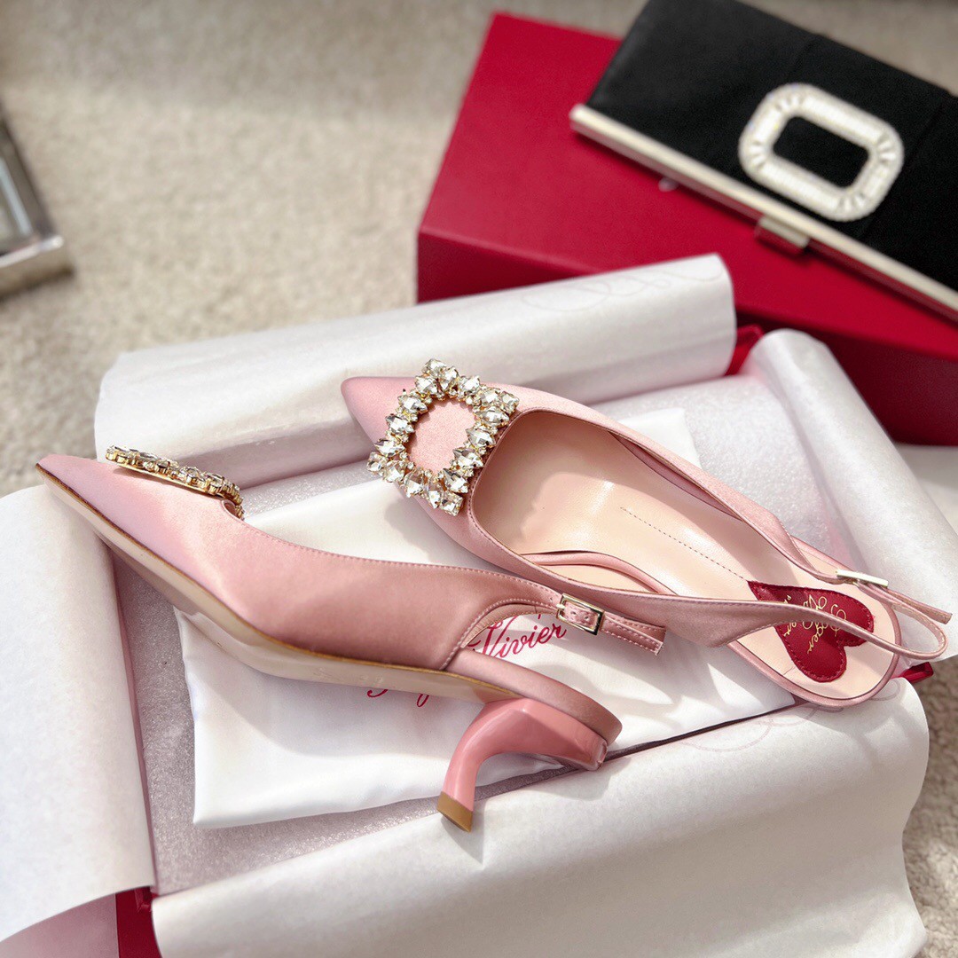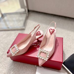 The 1963 Virgule heel, of the homonymous shape, is one of Monsieur Vivier’s most famous creations. This emblem of the Maison is the signature element of the Virgule Slingback Pumps. Crafted in satin, this version is enhanched with by the new buckle inspired by the creative director Gherardo Felloni’s garden. Composed of crystals in different sizes, this enchanting buckle with a floral shape features elements recalling the shape of a lemon.
