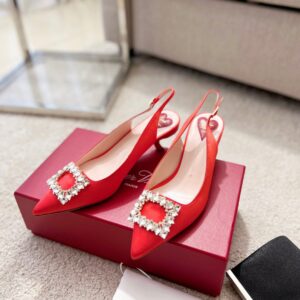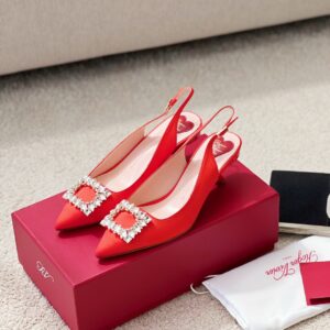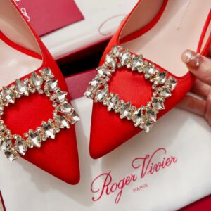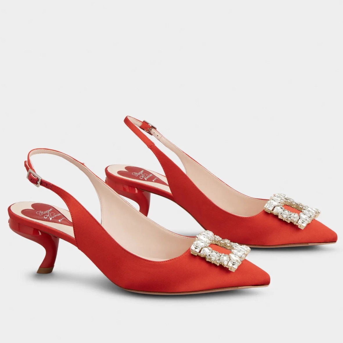 The 1963 Virgule heel, of the homonymous shape, is one of Monsieur Vivier’s most famous creations. This emblem of the Maison is the signature element of the Virgule Slingback Pumps. Crafted in satin, this version is enhanched with by the new buckle inspired by the creative director Gherardo Felloni’s garden. Composed of crystals in different sizes, this enchanting buckle with a floral shape features elements recalling the shape of a lemon.