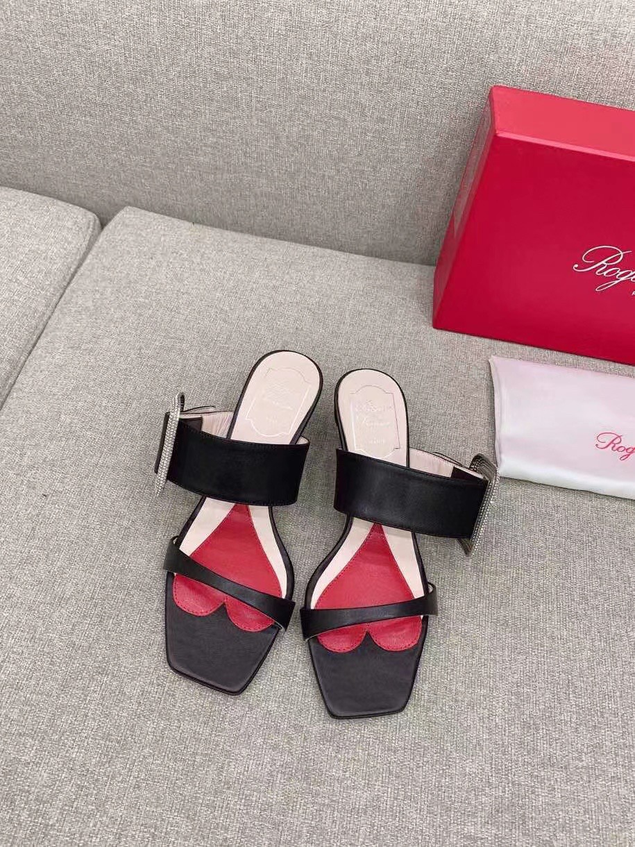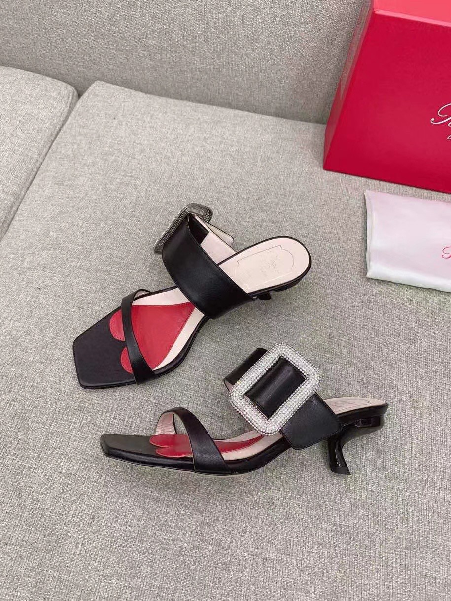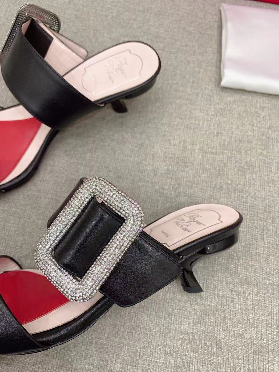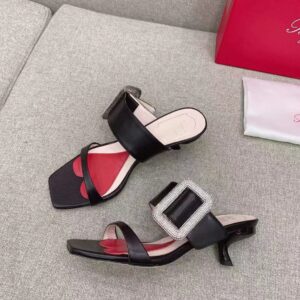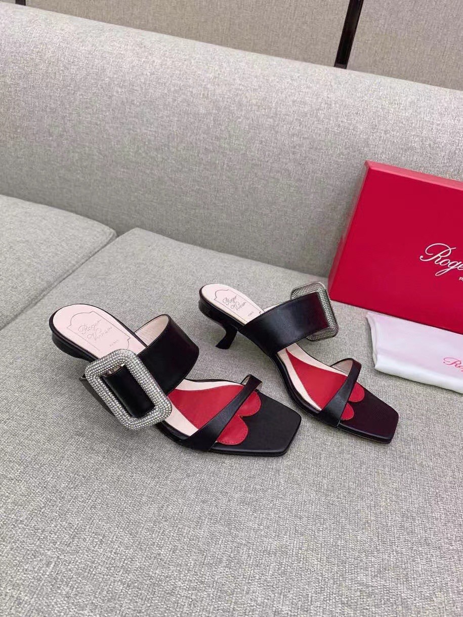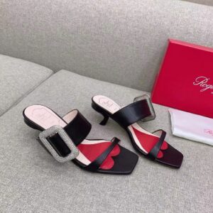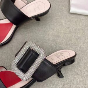 Roger Vivier Viv’ Choc Side Strass Buckle Mules in Black Leather