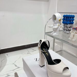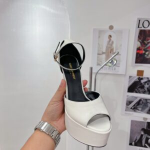 Saint Laurent Jodie Platform Sandals In White Lambskin