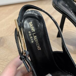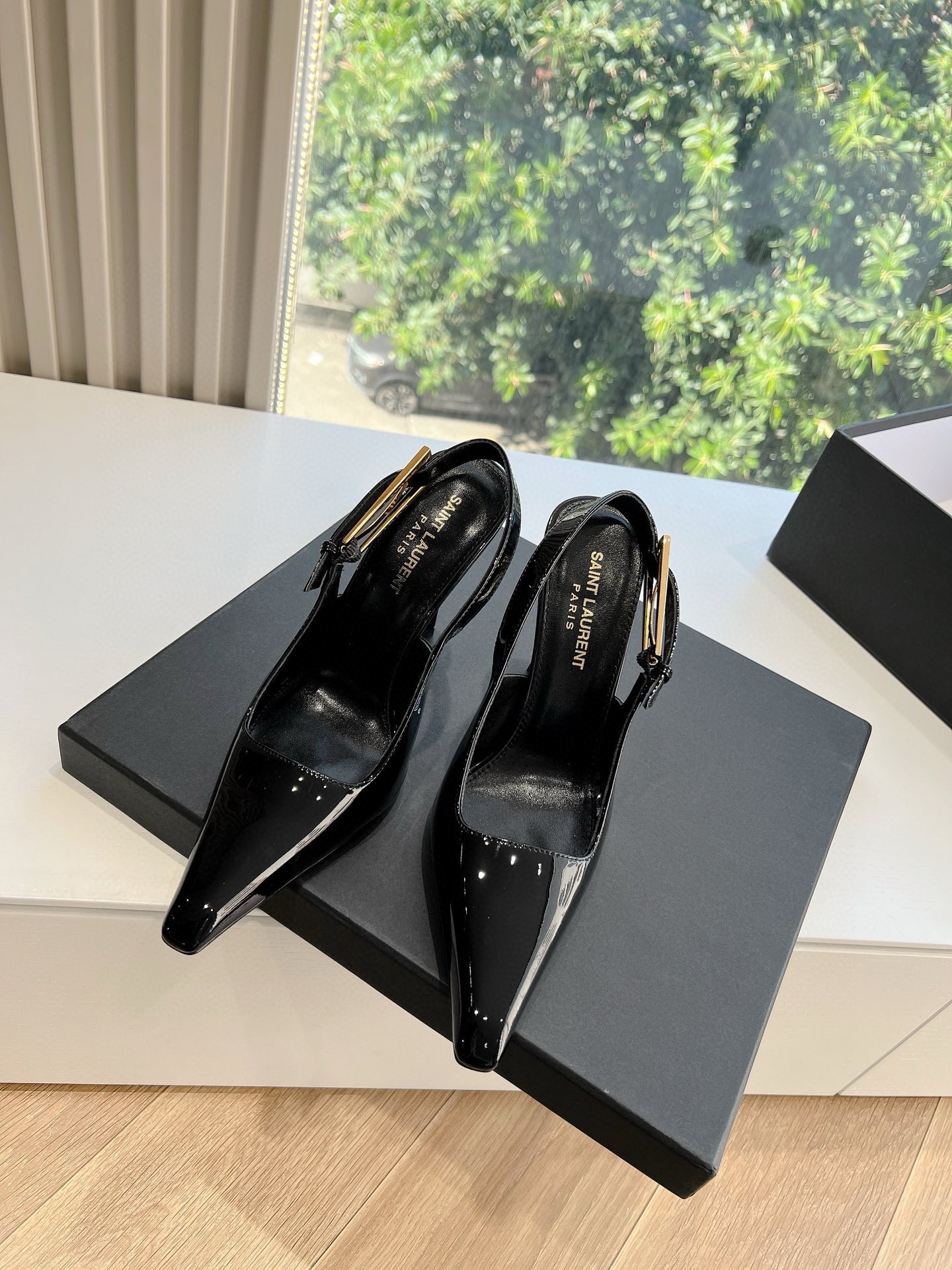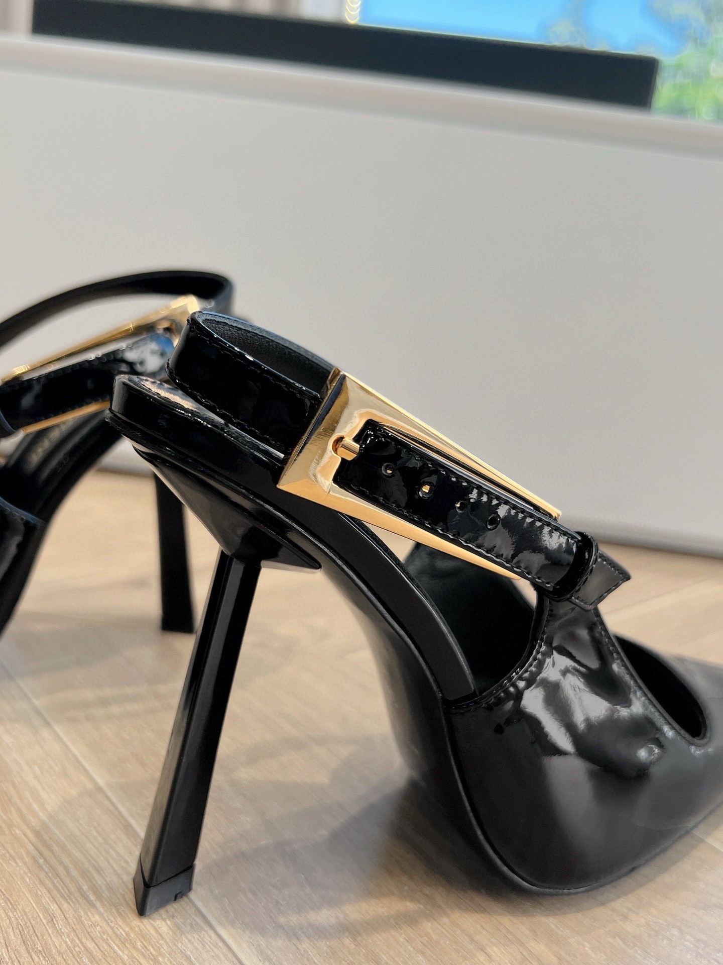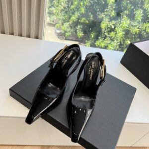Saint Laurent’s Lee slingbacks will elevate any look thanks to the pointed toe and covered asymmetric stiletto heels. They’ve been made from glossy patent calfskin and have an exaggerated gold-tone buckle. This black version looks chic with nearly anything.