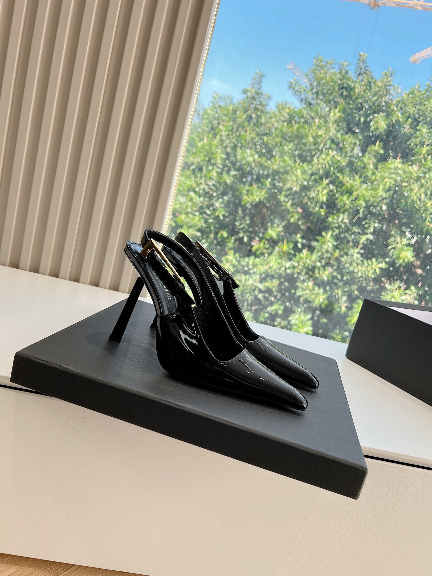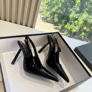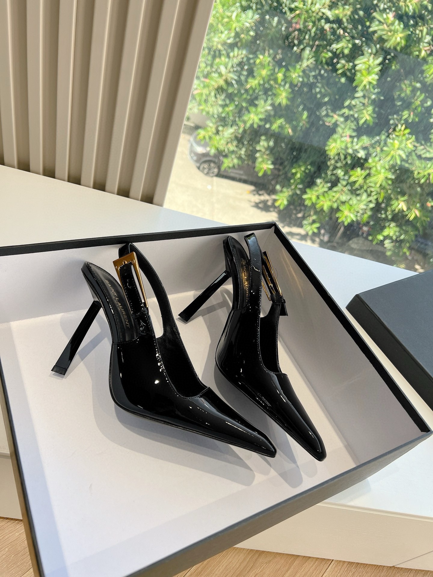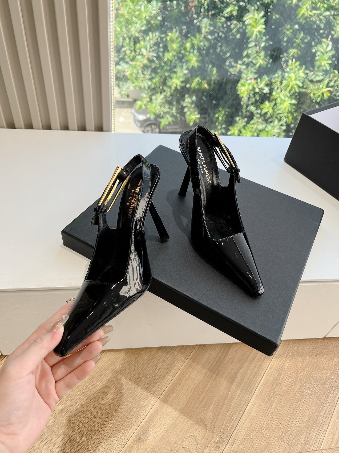 Saint Laurent’s Lee slingbacks will elevate any look thanks to the pointed toe and covered asymmetric stiletto heels. They’ve been made from glossy patent calfskin and have an exaggerated gold-tone buckle. This black version looks chic with nearly anything.